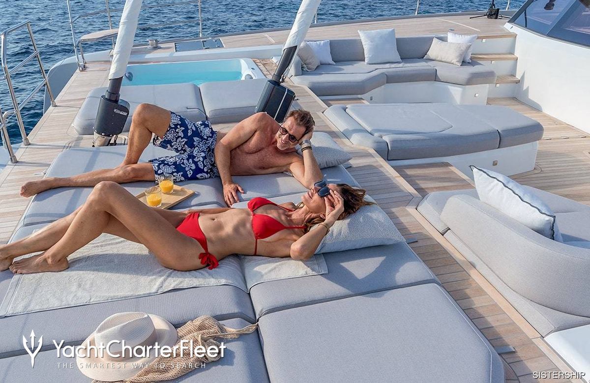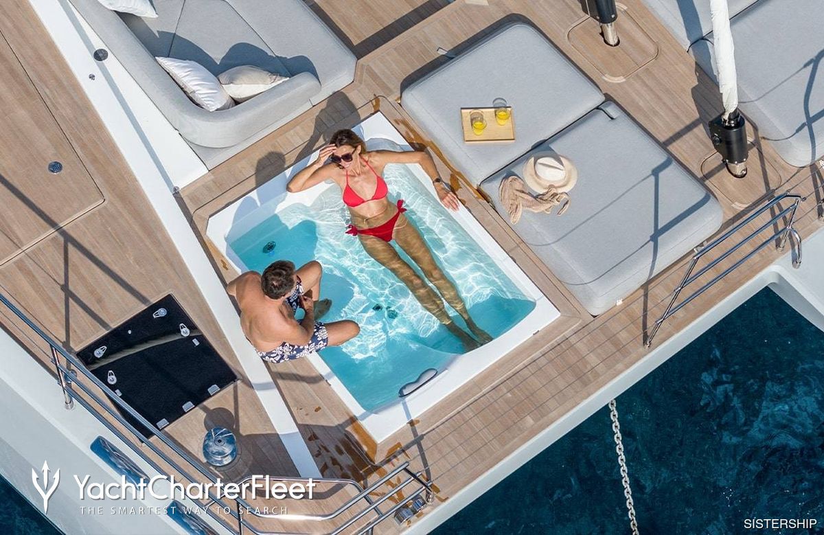 Keeping comfortable and entertained on Capri is easy thanks to the available amenities including a deck jacuzzi, perfect to enjoy the scenery with your favourite drink in hand.