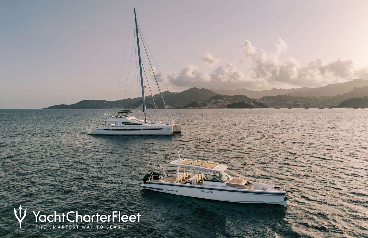 Set against the backdrop of your chosen cruising ground, you and your guests can enjoy fun on the water with the collection of water toys and accessories aboard Avanti. Principle among these are towable toys offering fun and adventure. In addition there are waterskis that are hugely entertaining whether you are a beginner or a seasoned pro. Additionally, there are wakeboards so guests can show off at speed. If that isn't enough Avanti also features fishing equipment, inflatable water toys and snorkelling equipment. Avanti has a 11.28m/37' Axopar Chase Tender to transfer you from ship to shore.