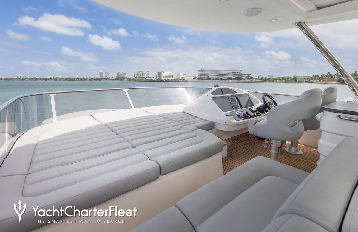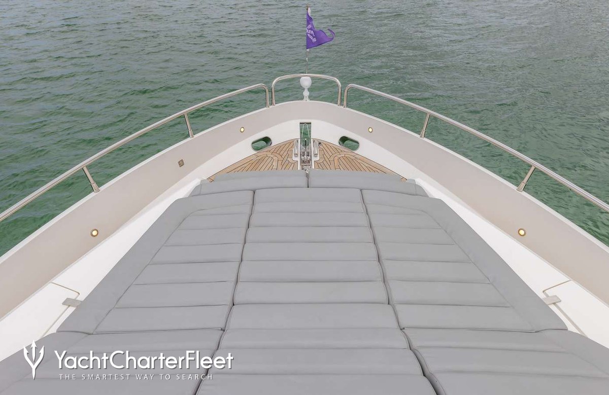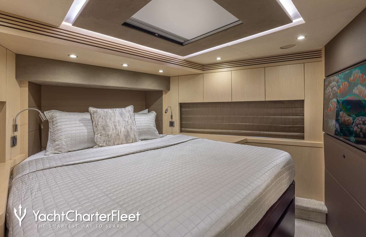 The 23m/75'6" motor yacht 'Helios' by the British shipyard Sunseeker offers flexible accommodation for up to 8 guests in 4 cabins.