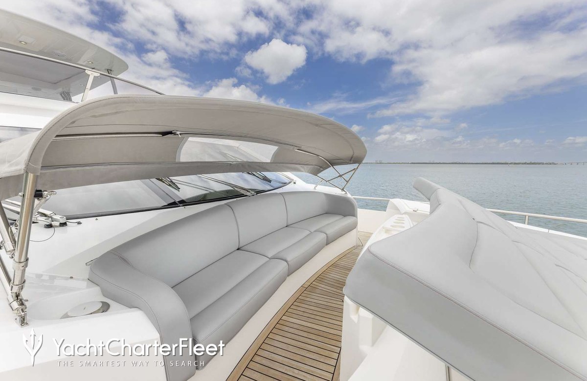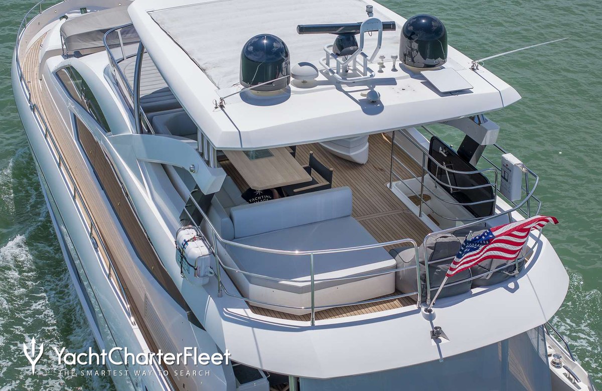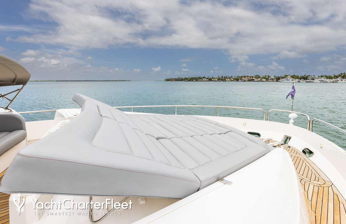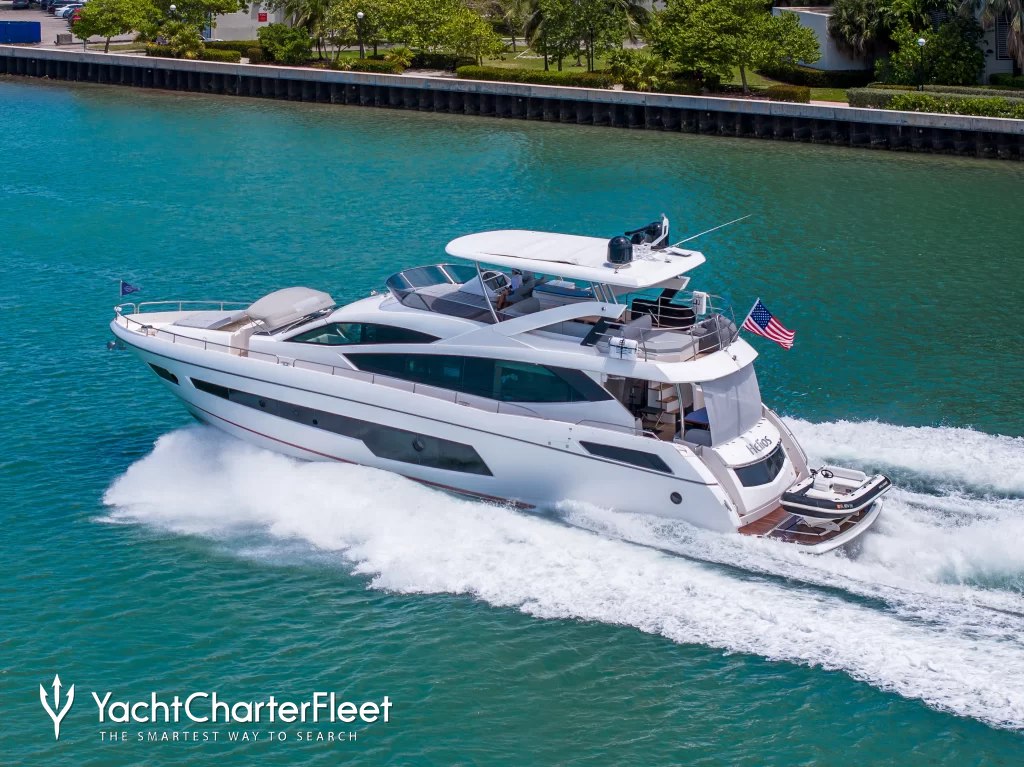 The 23m/75'6" motor yacht 'Helios' by the British shipyard Sunseeker offers flexible accommodation for up to 8 guests in 4 cabins.
