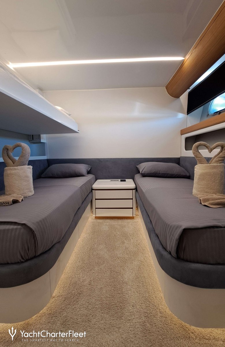 Gulsah benefits from some excellent features to improve your charter, notably the underwater lights, adding spectacle and style after dark. With Wi-Fi connectivity you don't have to lose contact with the outside world, unless you want to plus guests will experience complete comfort while chartering thanks to air conditioning.