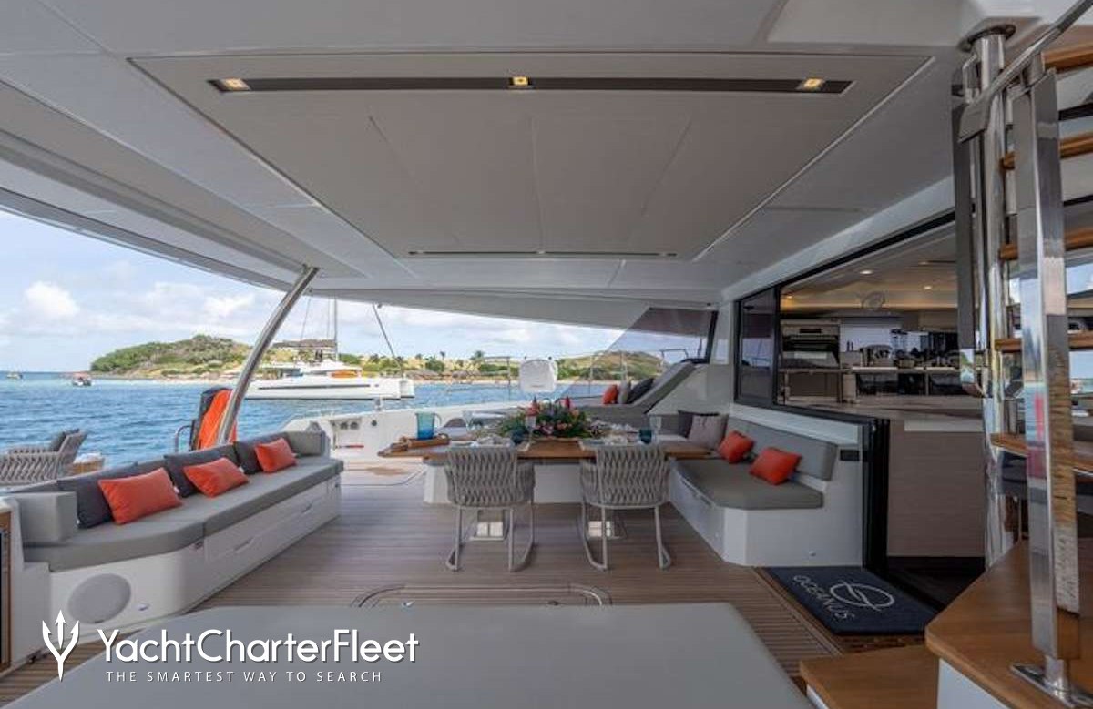 Catamaran yacht Encore boasts an impressive array of outstanding amenities for truly out-of-this-world charter vacations that you’ll never forget.