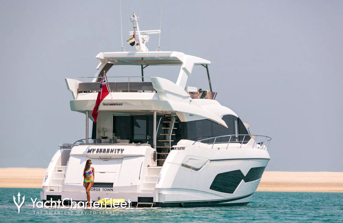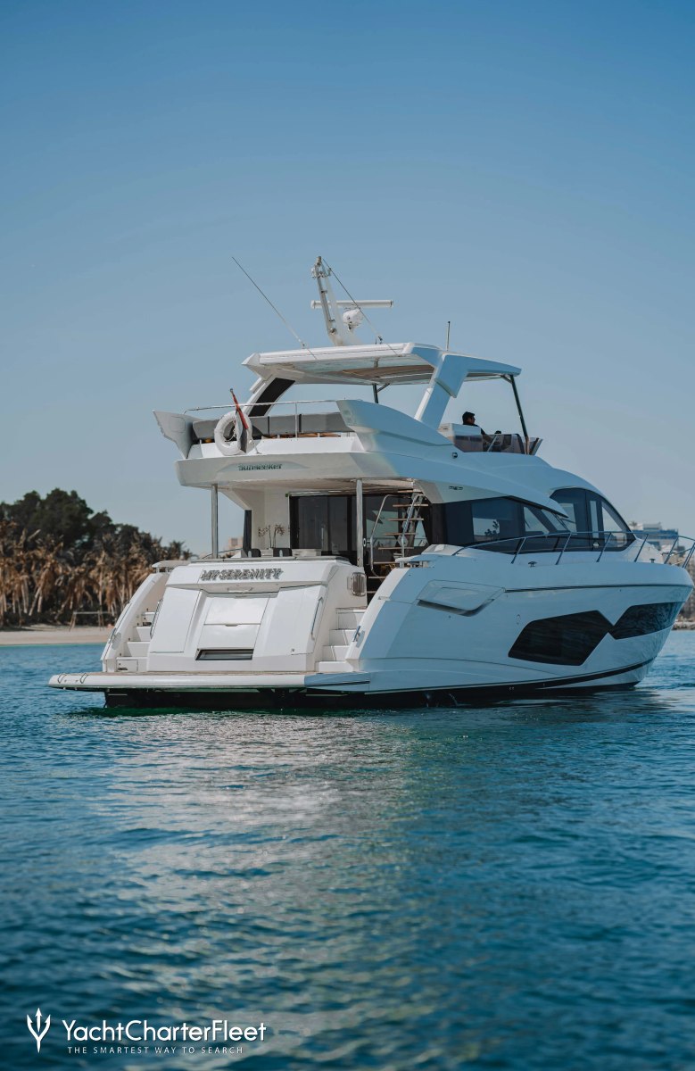 The luxury motor yacht My Serenity is displayed on this page merely for informational purposes and she is not necessarily available for yacht charter or for sale, nor is she represented or marketed in anyway by Trident Media Ltd. This document is not contractual. The yacht particulars displayed in the results above are displayed in good faith and whilst believed to be correct are not guaranteed, please check with your yacht charter broker. Trident Media Ltd does not warrant or assume any legal liability or responsibility for the accuracy, completeness, or usefulness of any information and/or images displayed as they may not be current. All boat information is subject to change without prior notice and is without warranty.
