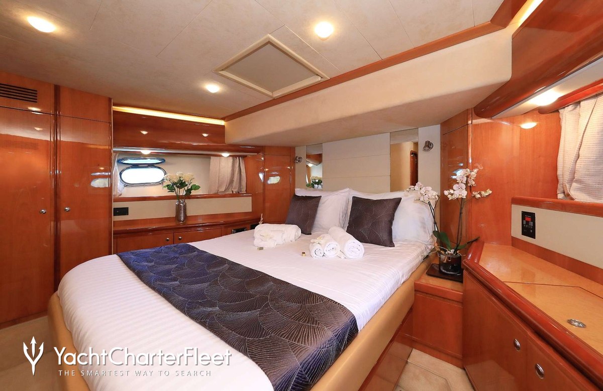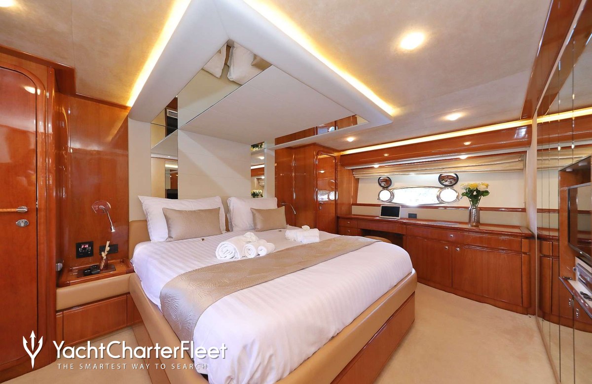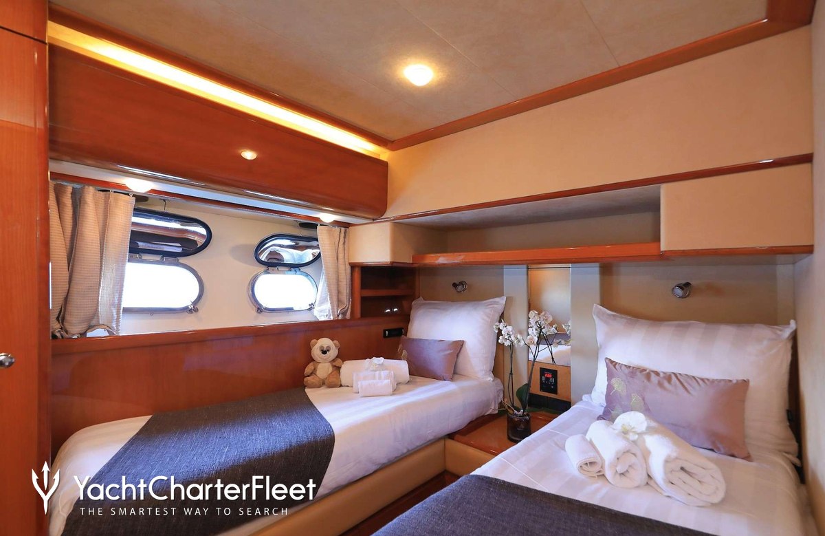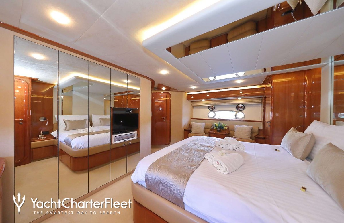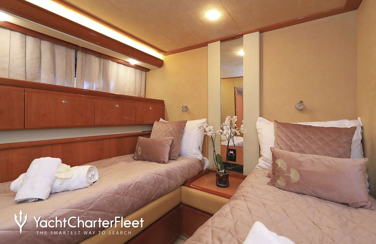 Luna Rossa offers guest accommodation for up to 8 guests in 4 suites comprising a master suite, one VIP cabin and two twin cabins. She is also capable of carrying up to 4 crew onboard to ensure a relaxed luxury yacht charter experience.
