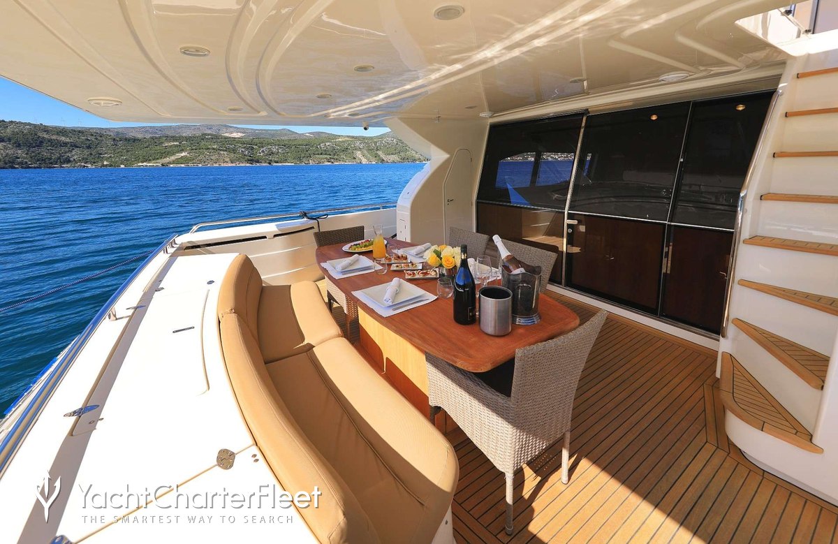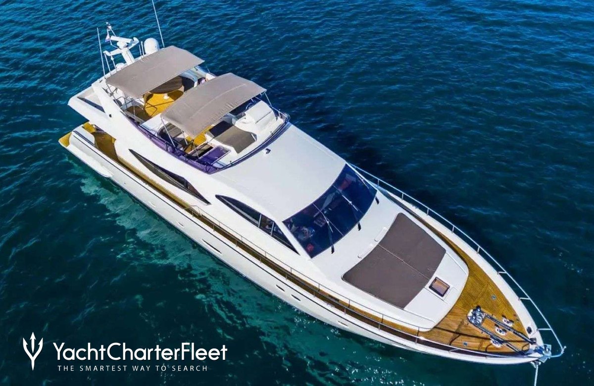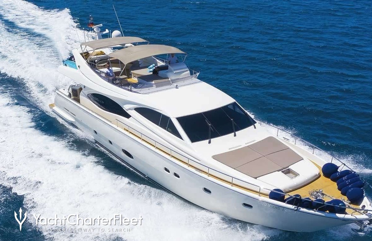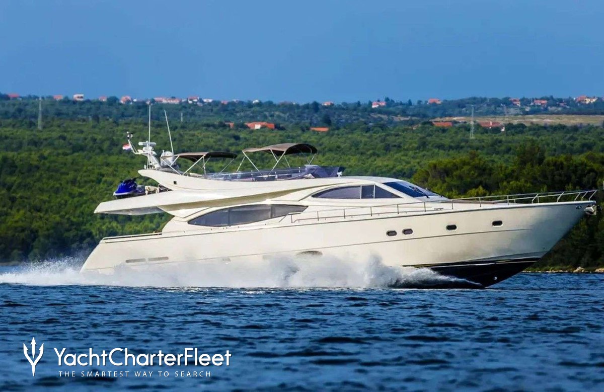 The 23.45m/76'11" 'Luna Rossa' motor yacht built by the Italian shipyard Ferretti Yachts is available for charter for up to 8 guests in 4 cabins.