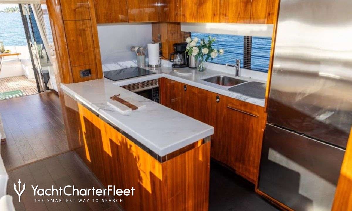 Whatever your activities on your charter, you'll find some impressive features are seamlessly integrated to help you including Wi-Fi connectivity, allowing you to stay connected at all times, should you wish. You can stay comfortable on board whatever the weather, with air conditioning during your charter.