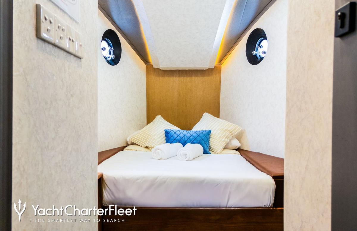 Powered by 1 x Yanmar engines, she comfortably cruises at 12 knots. With a shallow draft of Solara can anchor closer to coves and sheltered bays overnight.