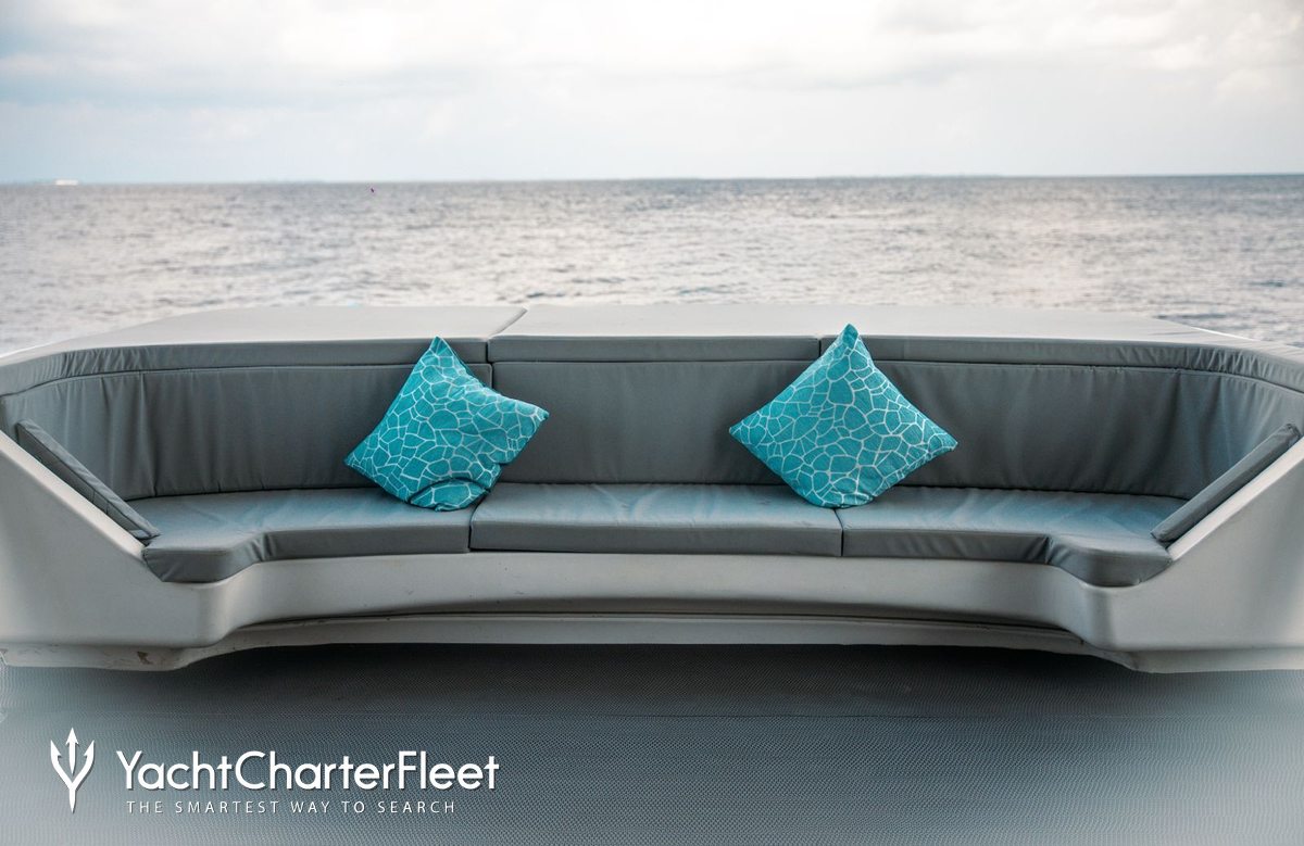 Solara benefits from some excellent features to improve your charter, particularly air conditioning to keep your comfortable throughout your charter.