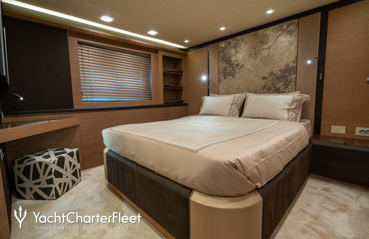 Bella Luna offers guest accommodation for up to 10 guests in 4 suites comprising a master suite and one VIP cabin. The bed configuration includes 2 convertible. She is also capable of carrying up to 4 crew onboard to ensure a relaxed luxury yacht charter experience.