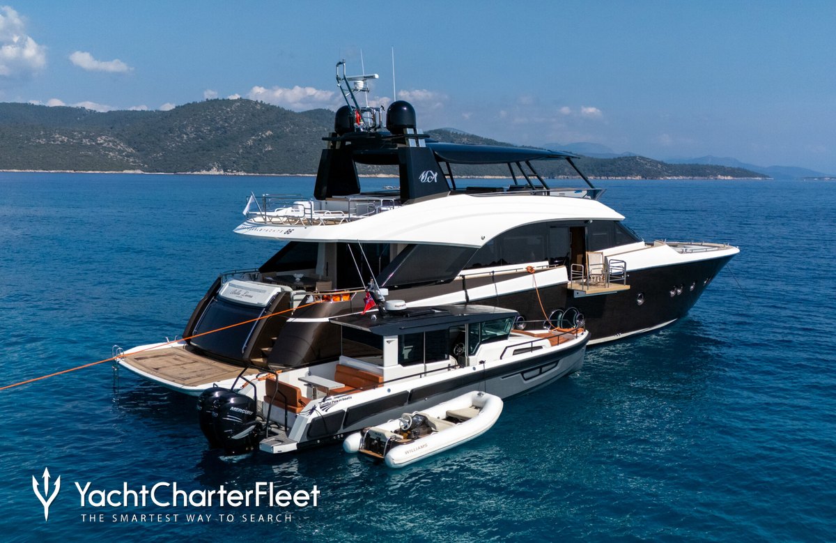 The 26.21m/86' 'Bella Luna' motor yacht built by the Italian shipyard Monte Carlo Yachts is available for charter for up to 10 guests in 4 cabins. This yacht features interior styling by Italian designer Nuvolari Lenard.