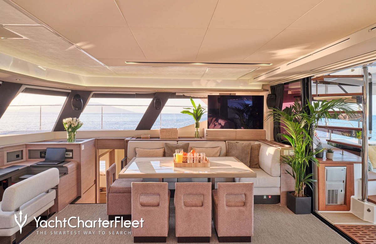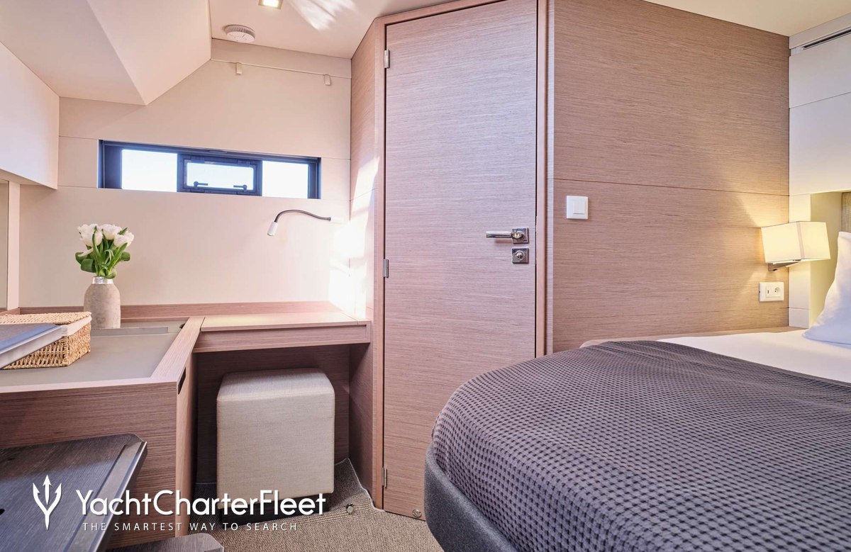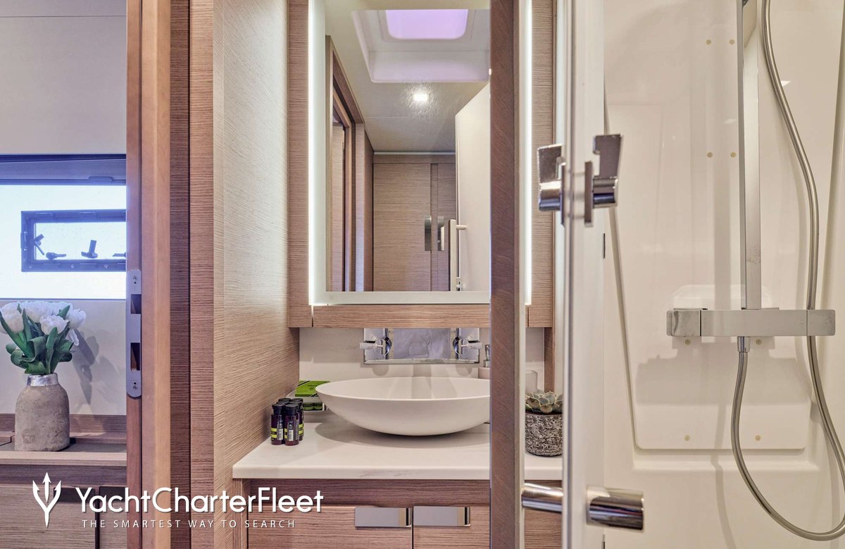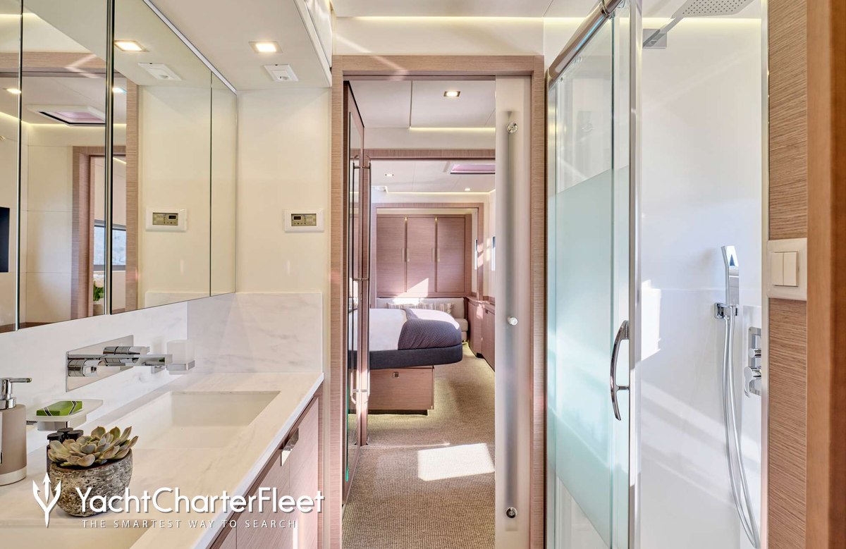 Whatever your activities on your charter, you'll find some impressive features are seamlessly integrated to help you, particularly Wi-Fi connectivity, allowing you to stay connected at all times, should you wish. You can stay comfortable on board whatever the weather, with air conditioning during your charter.