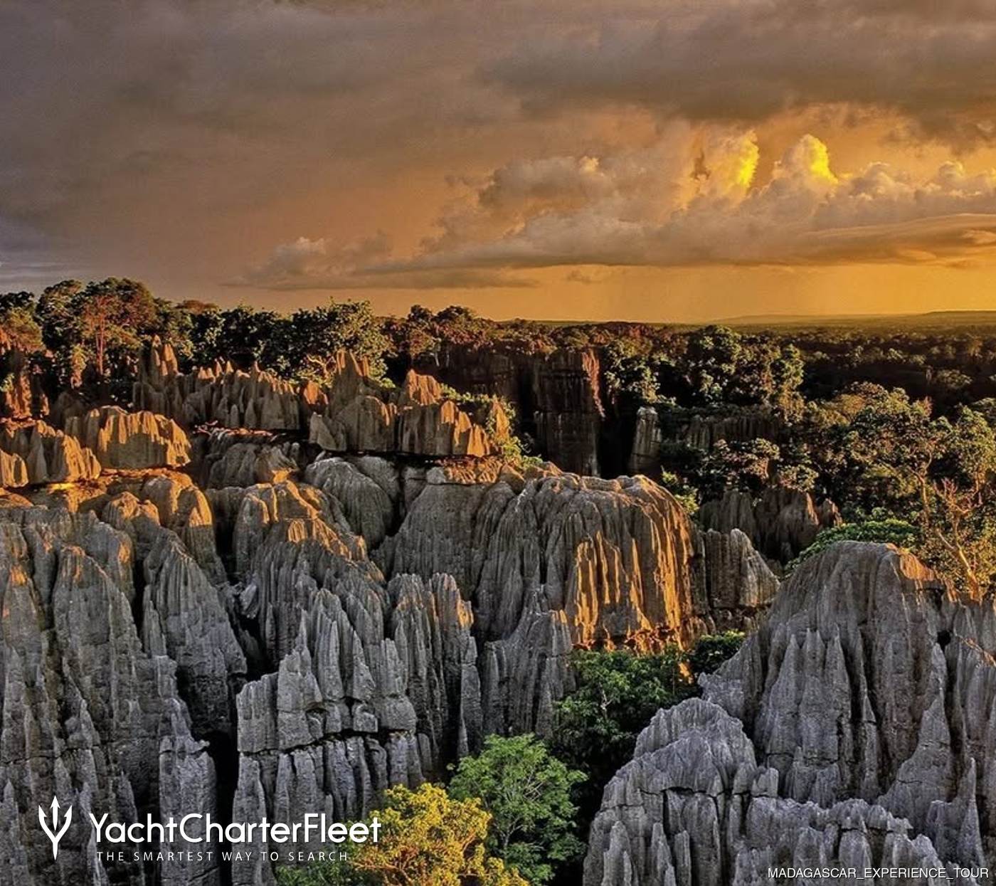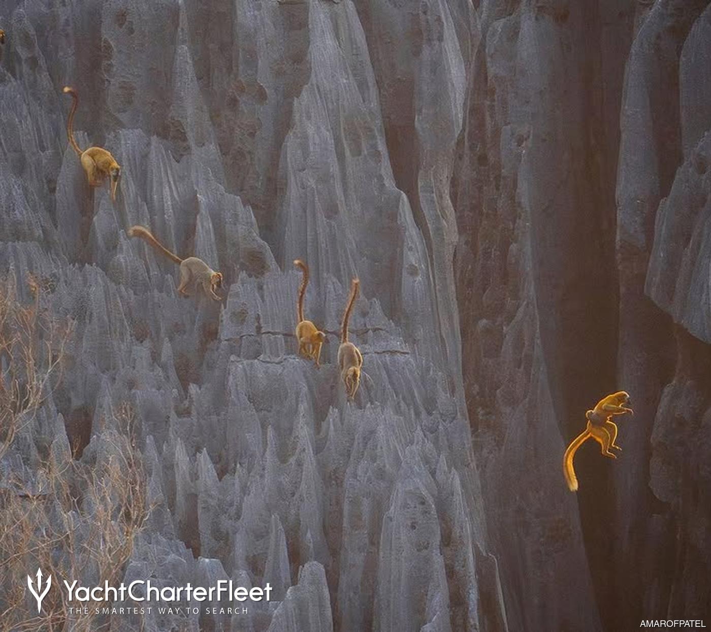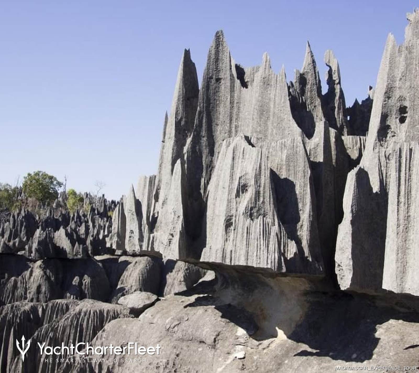 The park’s name, “Tsingy,” translates to “where one can only walk on tiptoe.” These limestone formations, shaped by centuries of erosion, create a striking landscape that defines the park’s character. Exploring this terrain reveals a network of sharp ridges, caves, and plateaus that are home to many rare and endemic species, making it an essential stop for those on a Madagascar yacht charter looking to experience the island beyond its coastline.