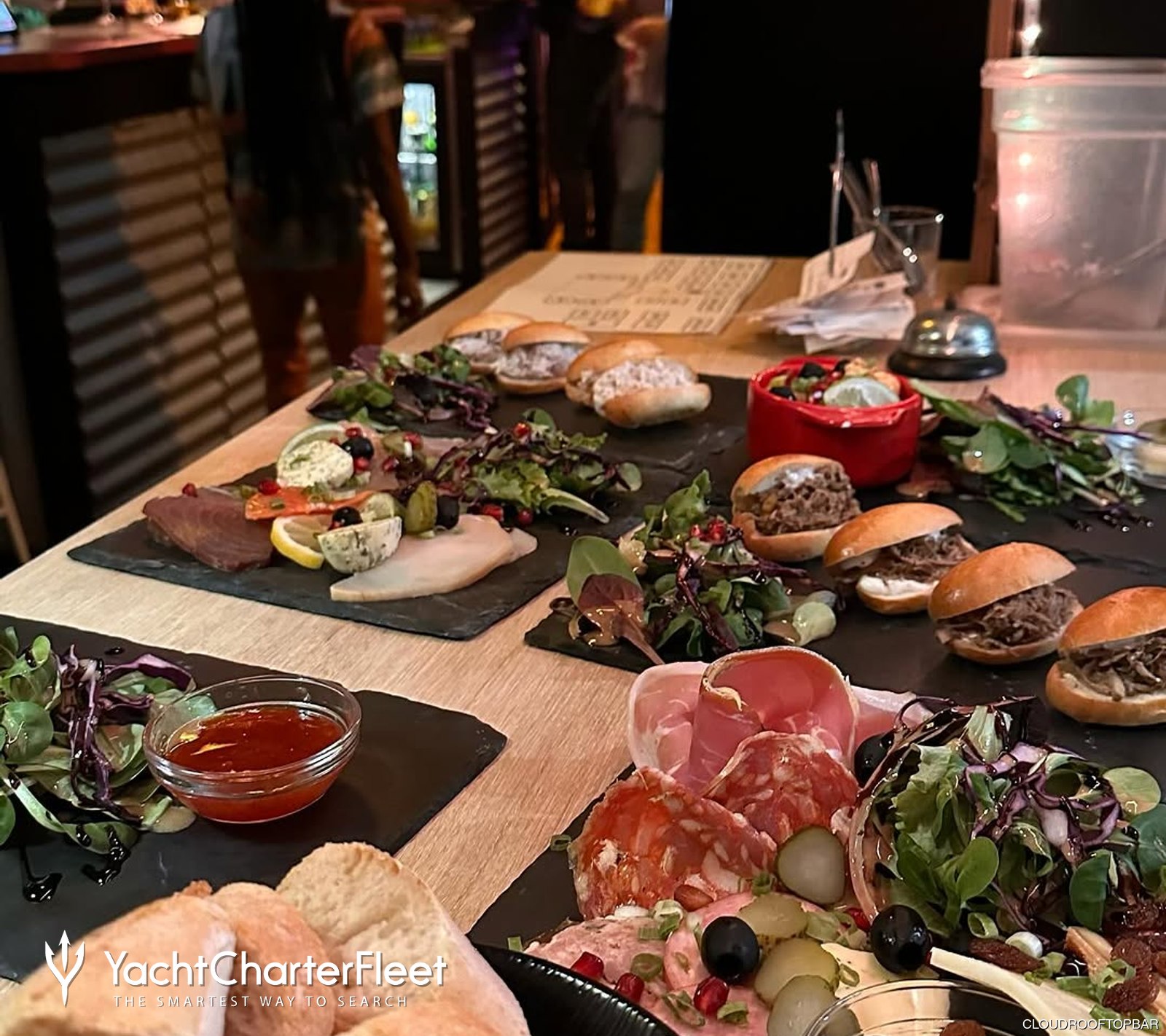 For those looking for something more substantial, the menu also features warm dishes and desserts. The combination of food and crafted drinks makes this rooftop bar a consistent destination for a relaxed evening. The food menu is designed to pair with the beverages, allowing guests to enjoy a seamless experience while exploring the area as part of a Caribbean yacht charter itinerary.