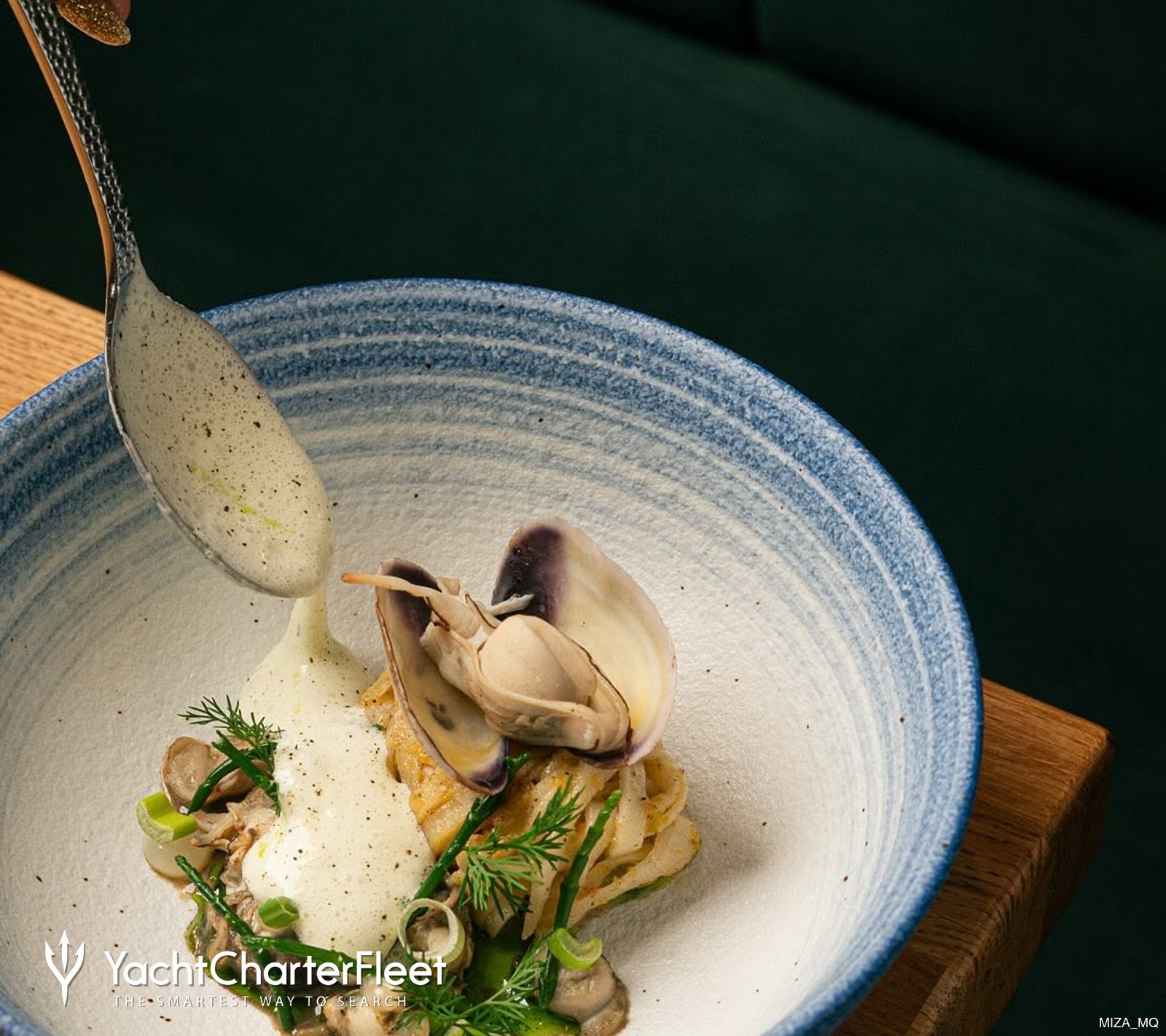 MIZA is built around a vision of highlighting the culinary potential of the island through a blind tasting format. The restaurant eliminates the fixed menu entirely, allowing guests from sailing yacht charters to choose the number of courses they prefer while the kitchen prepares a meal based on daily arrivals.