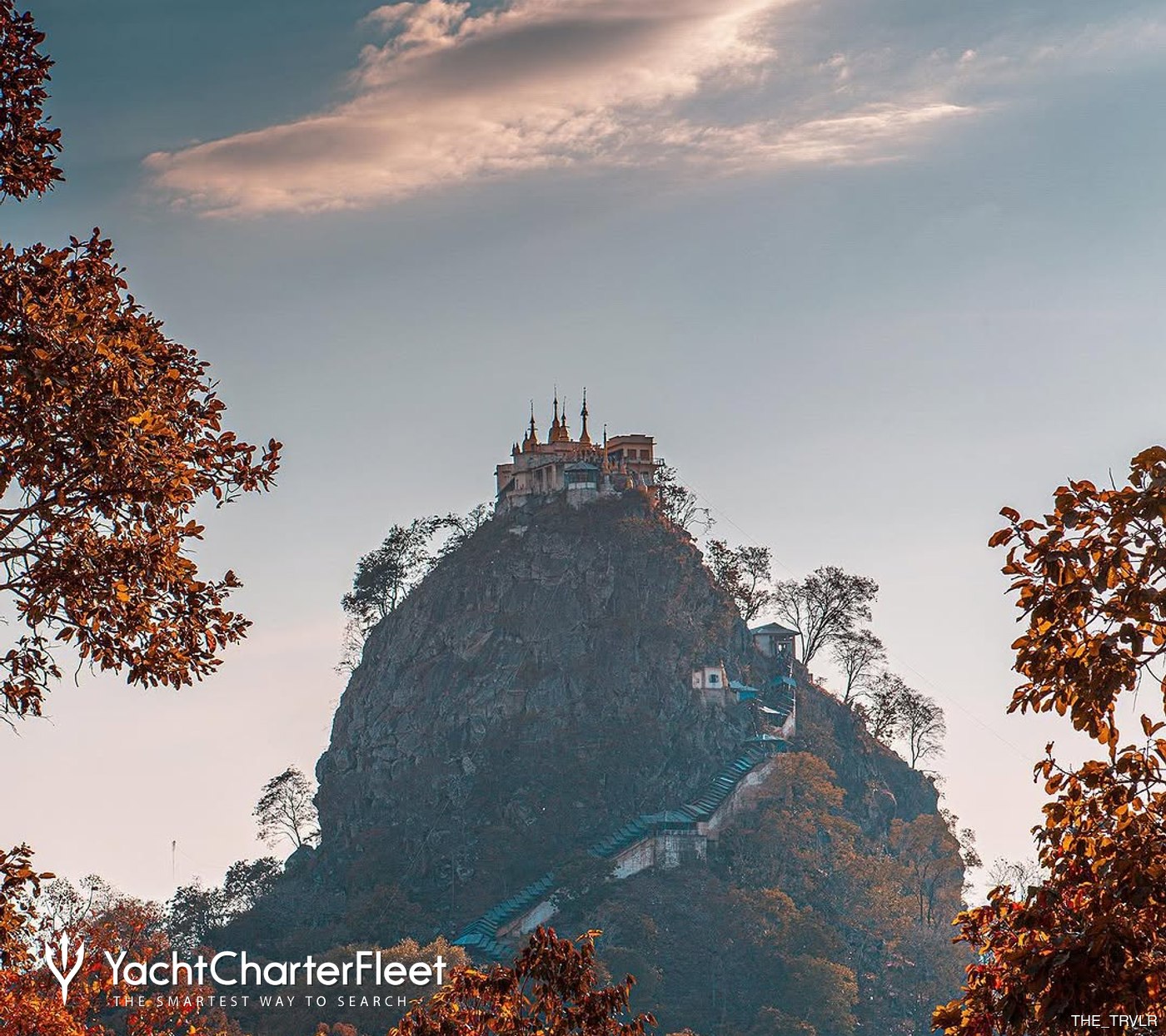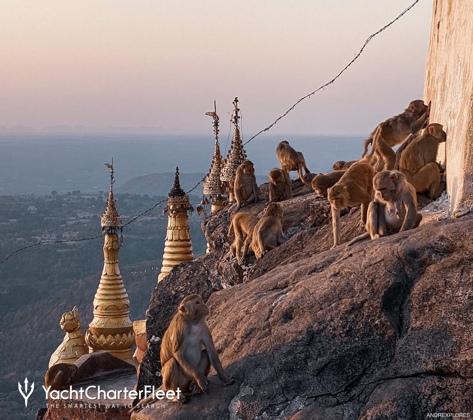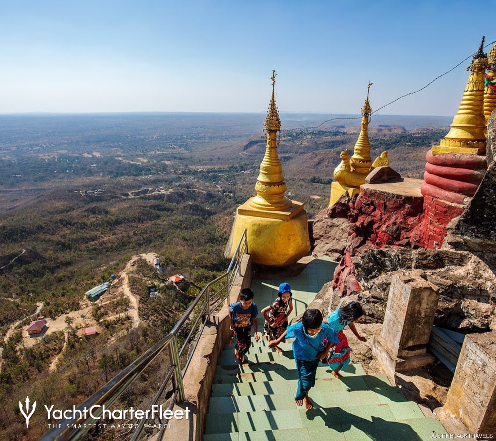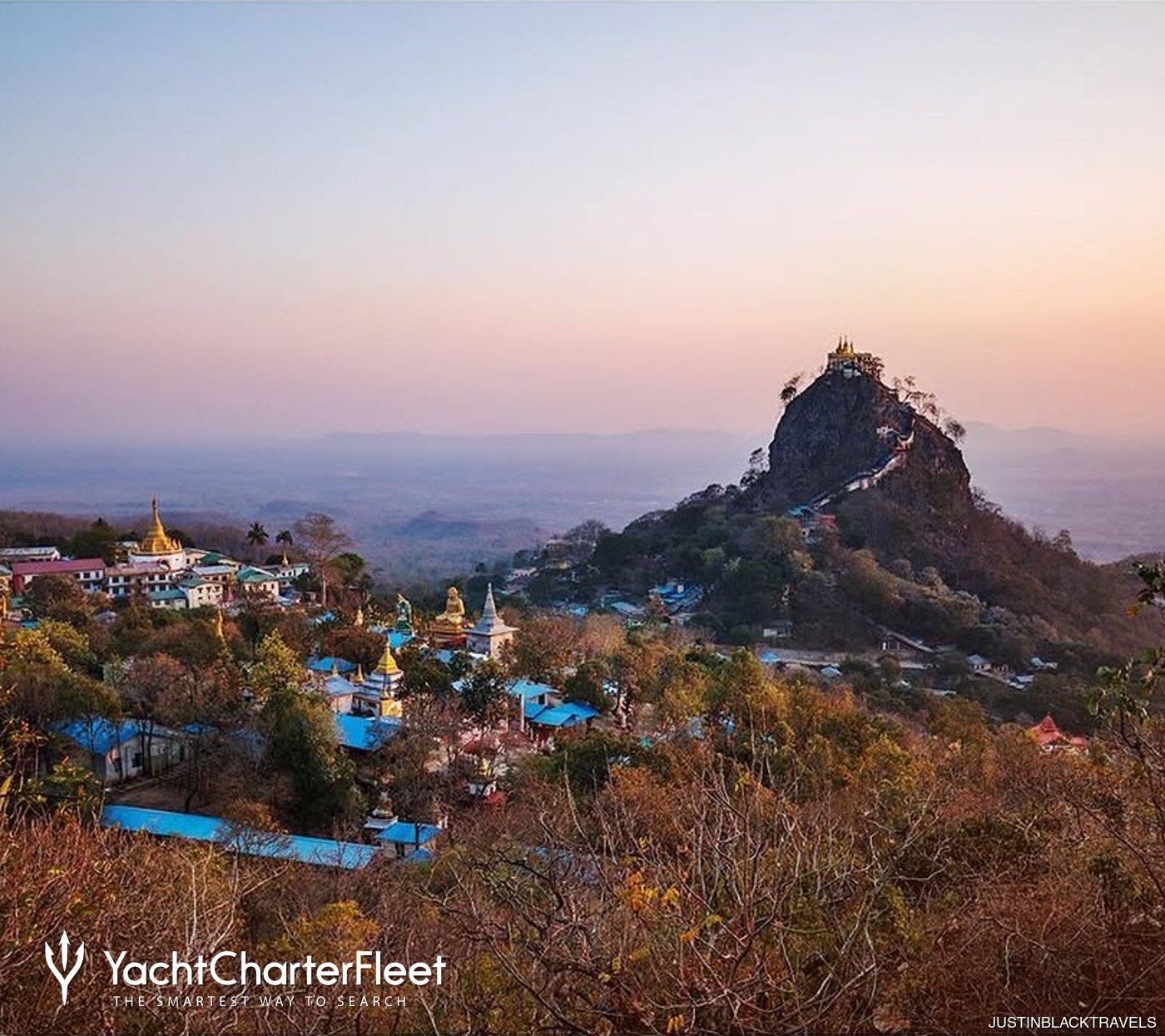 Though inland, Mount Popa can be part of a luxury journey through Myanmar. Yacht charter guests often pair island exploration with inland experiences for a more complete view of the country.