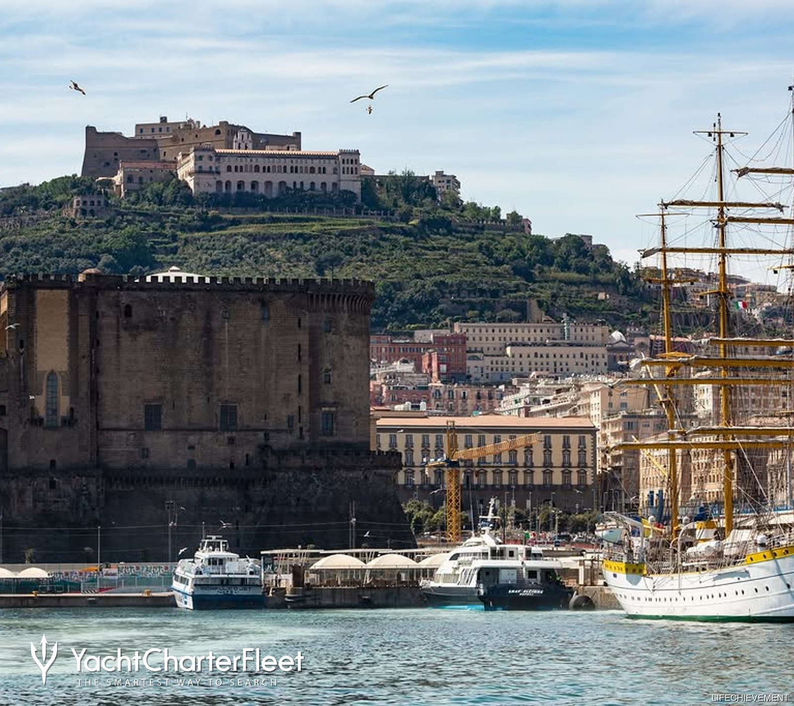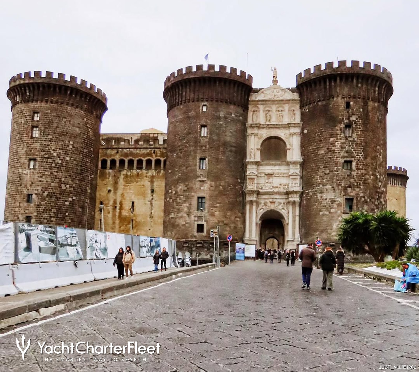 The castle sits next to Piazza Municipio, placing it in the center of Naples’ daily activity. It is only a short walk from major landmarks such as Teatro di San Carlo, Galleria Umberto I, and the Royal Palace. Its position on the waterfront also makes it easy to reach for anyone coming ashore during an Italy yacht charter.