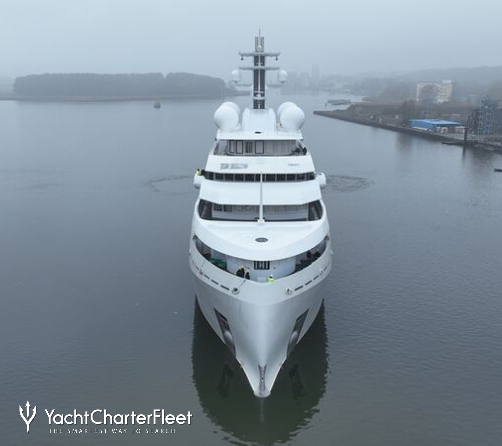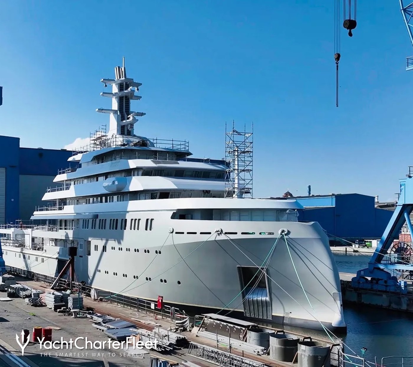 With her catalog of onboard amenities still under wraps, so far, it has been disclosed that she will host a wide range of premium facilities, such as a spa-quality health and wellness area complete with a spa and beach club, along with a master cabin with it's own private study, a swimming pool, an elevator for seamless movement around the decks, and a well-appointed helipad for stylish embarkations and high-flying excursions.