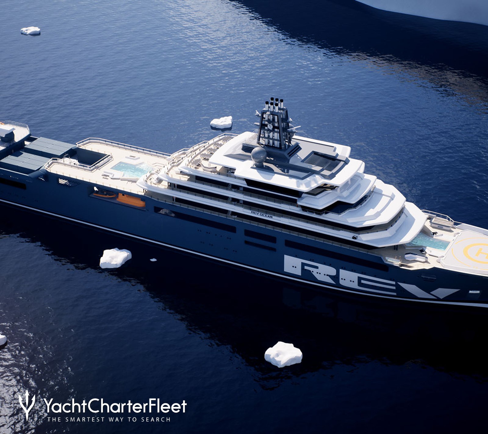 Set to knock 446ft (136m) luxury yacht charter FLYING FOX off the podium as the world's largest yacht for charter on her delivery, charter yacht REV OCEAN will effortlessly combine scientific research and indulgent luxury charter vacations to create an exceptional opportunity to experience the world's most remote locations in a truly unique way.