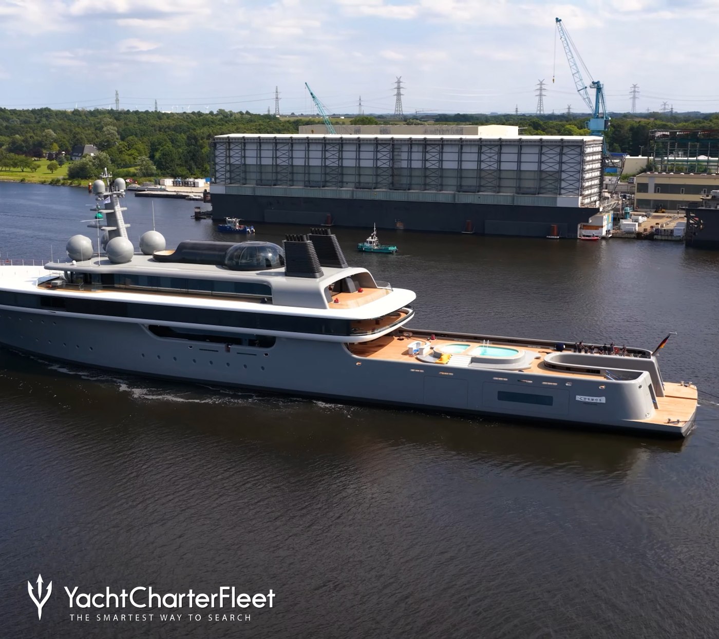 Currently undertaking her sea trials in the Bay of Kiel, the distinctive 374.8ft (114.2m) superyacht NAUSICAÄ has unveiled her new name as she heads towards an anticipated delivery in 2026.