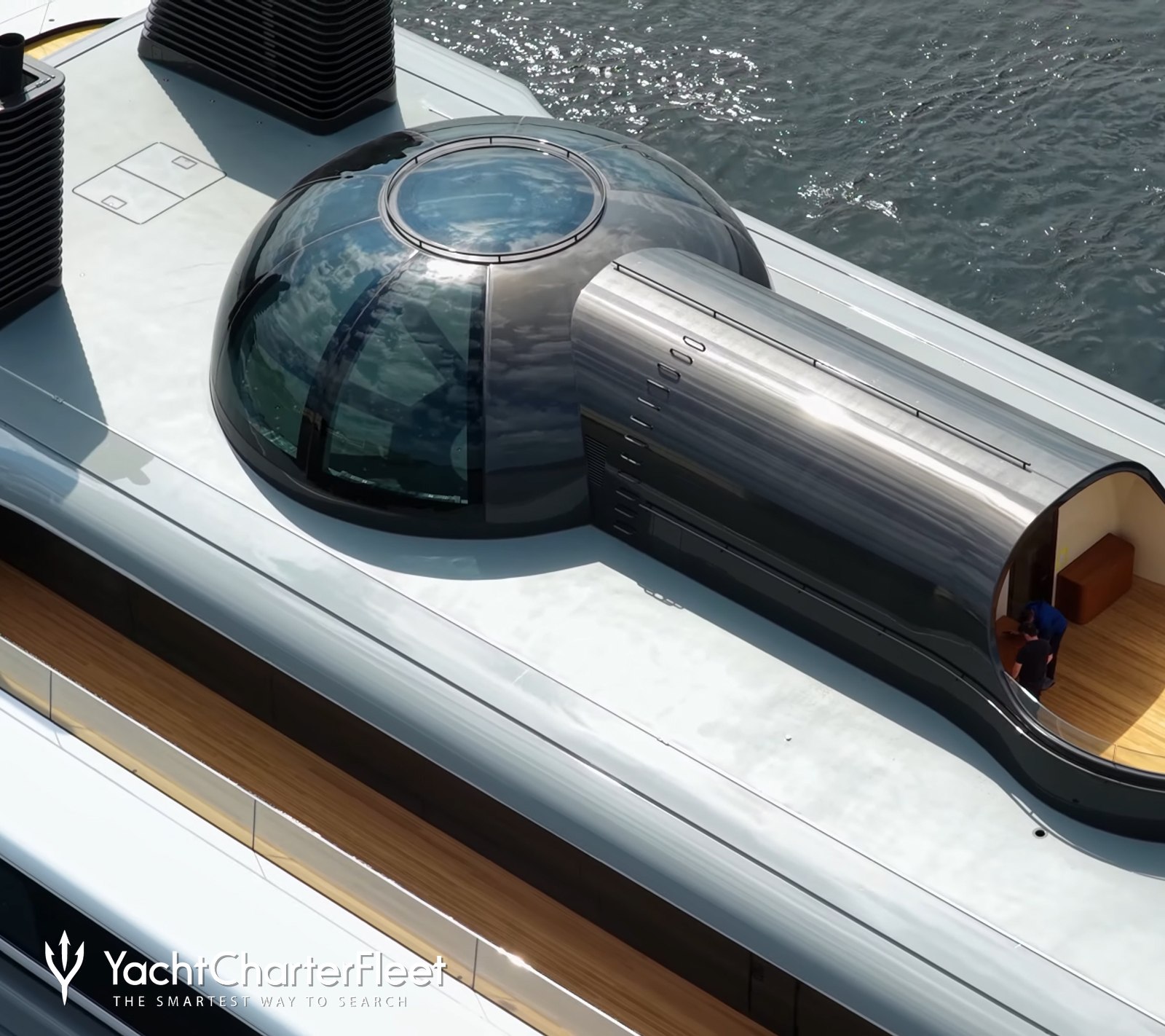 The complete listing of facilities remains shrouded in mystery for the time being; however, so far, it is confirmed that there is a well-appointed swimming pool that sports incredible views, a certified helipad for stylish embarkations and adventures in destinations suitable for heli-skiing, a spacious swim platform, private fold-down balconies, and sweeping 360-degree panoramic vistas.