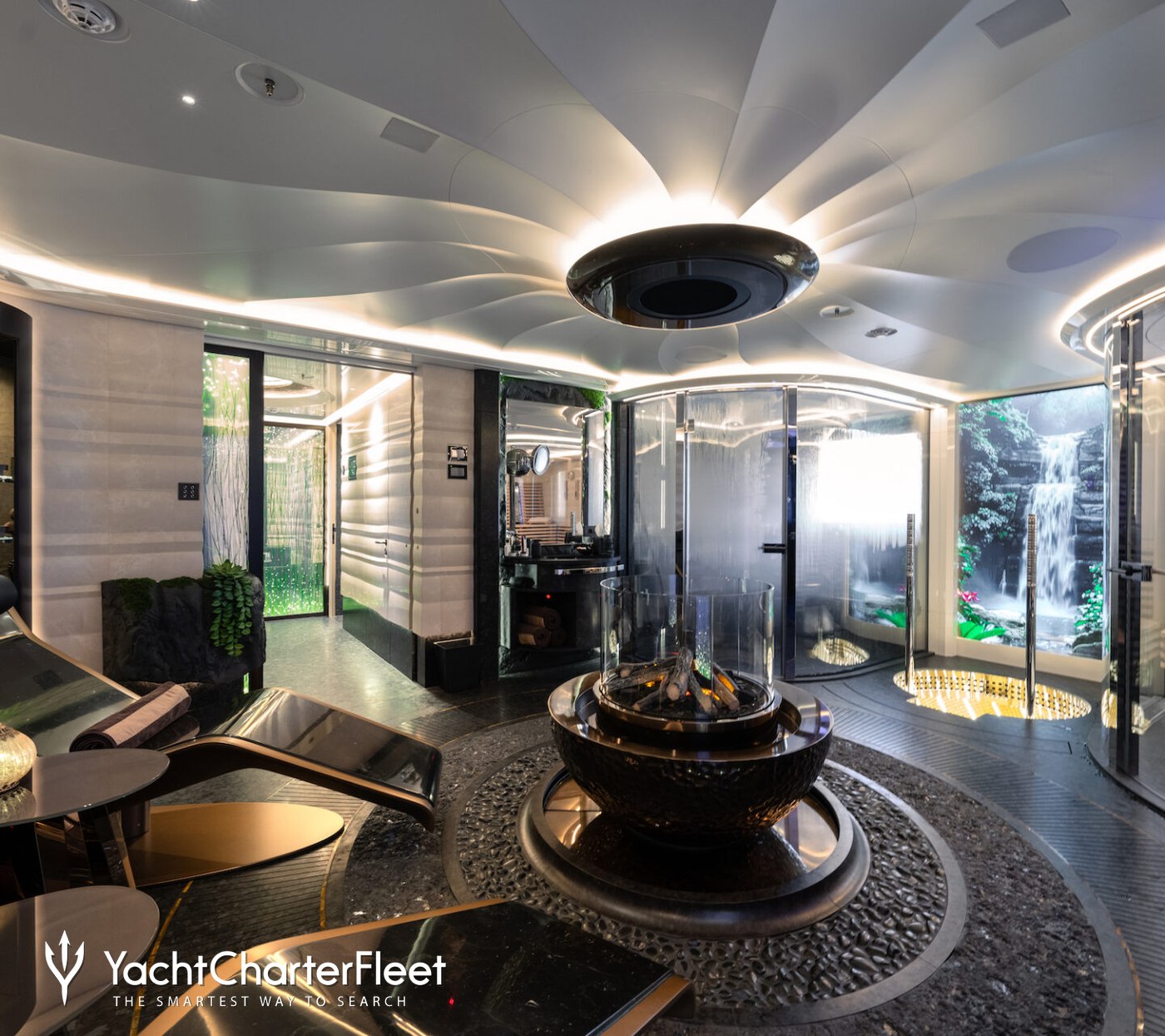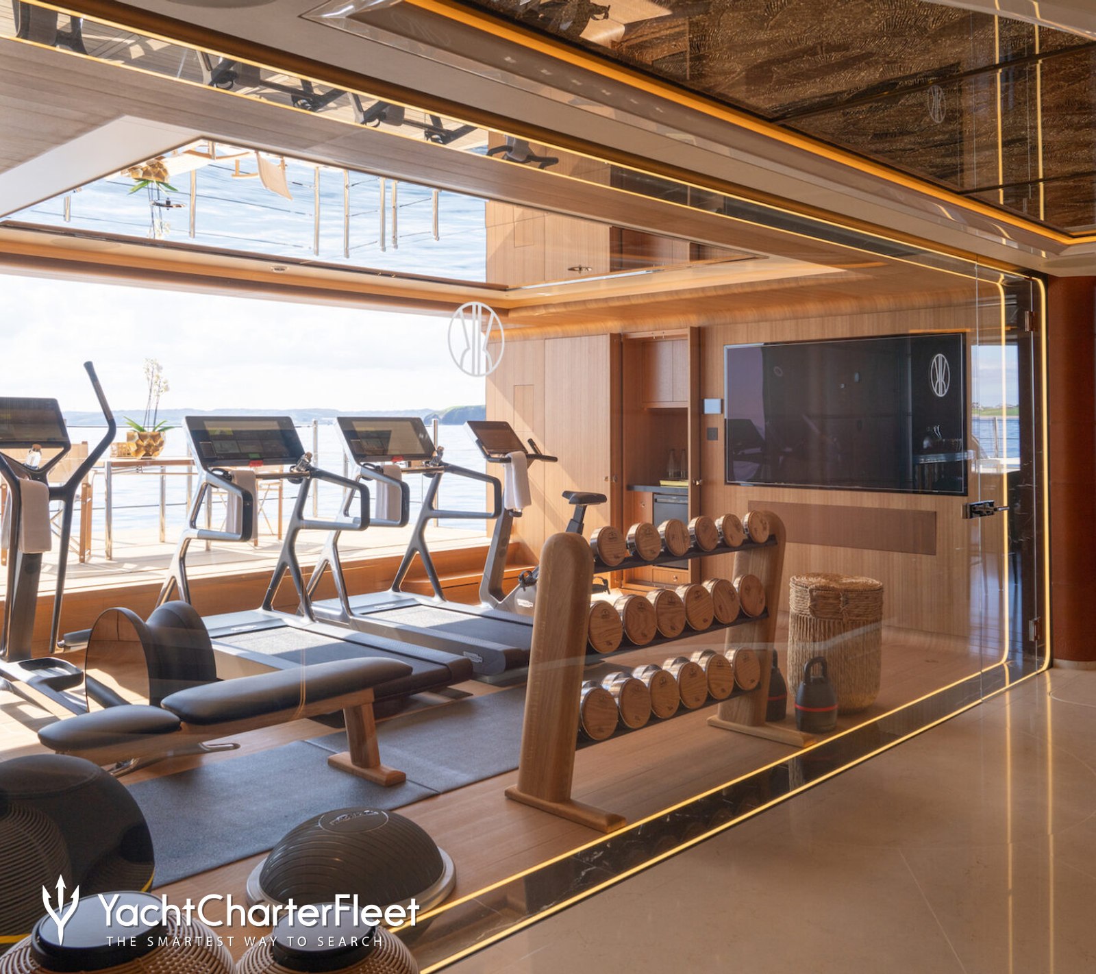 Comprising an indulgent spa, steam room, hammam, sauna, massage room, beauty room, and a gym, charter guests on board yacht rental KISMET have every luxury at their fingertips for busy yet relaxing voyages.