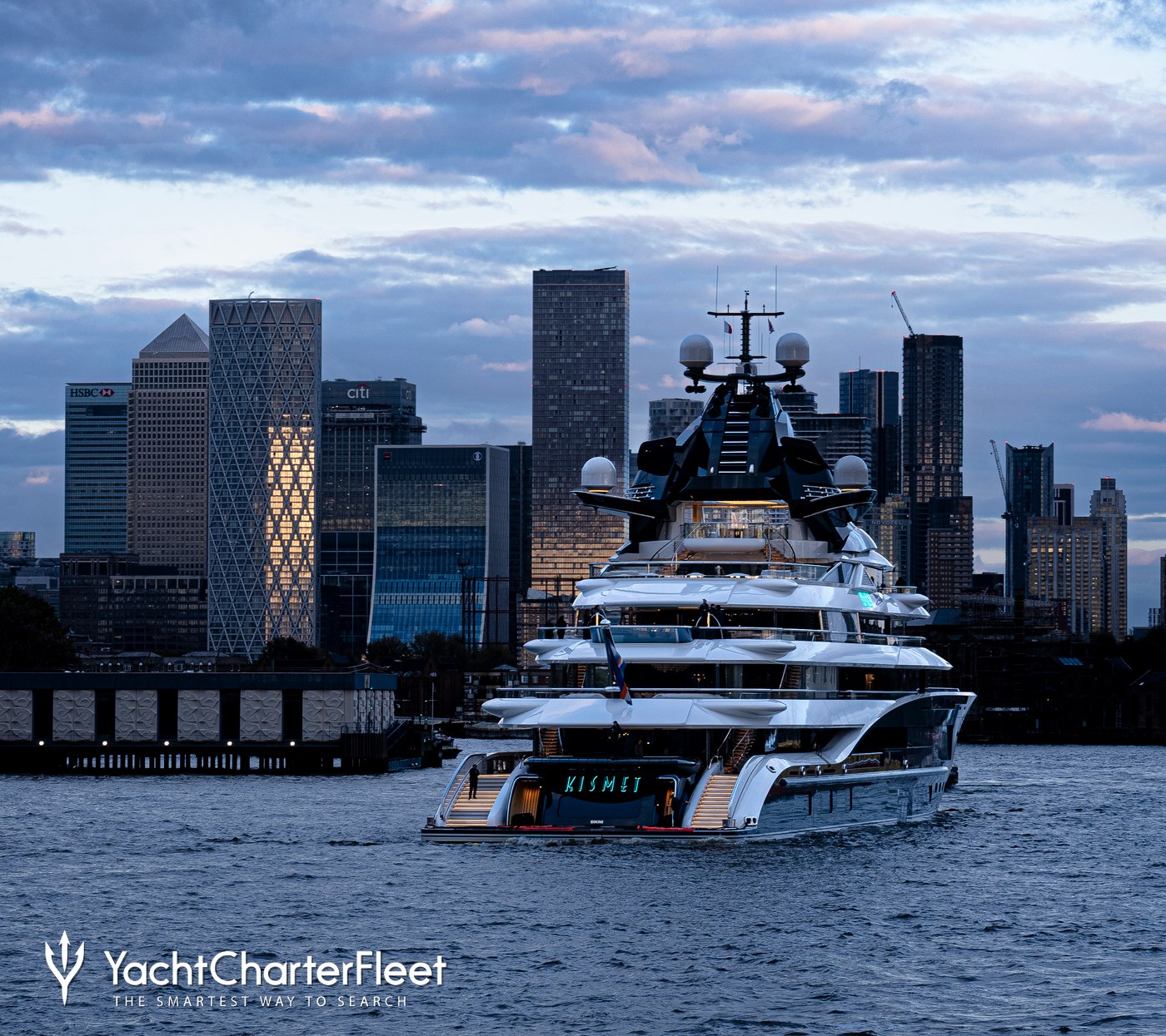 Firmly placed among the world's largest yachts for charter, KISMET comfortably sits mid-table of the YachtBuyer YB100 listing of the world's biggest yachts, now surpassing 560 days on the official rankings.
