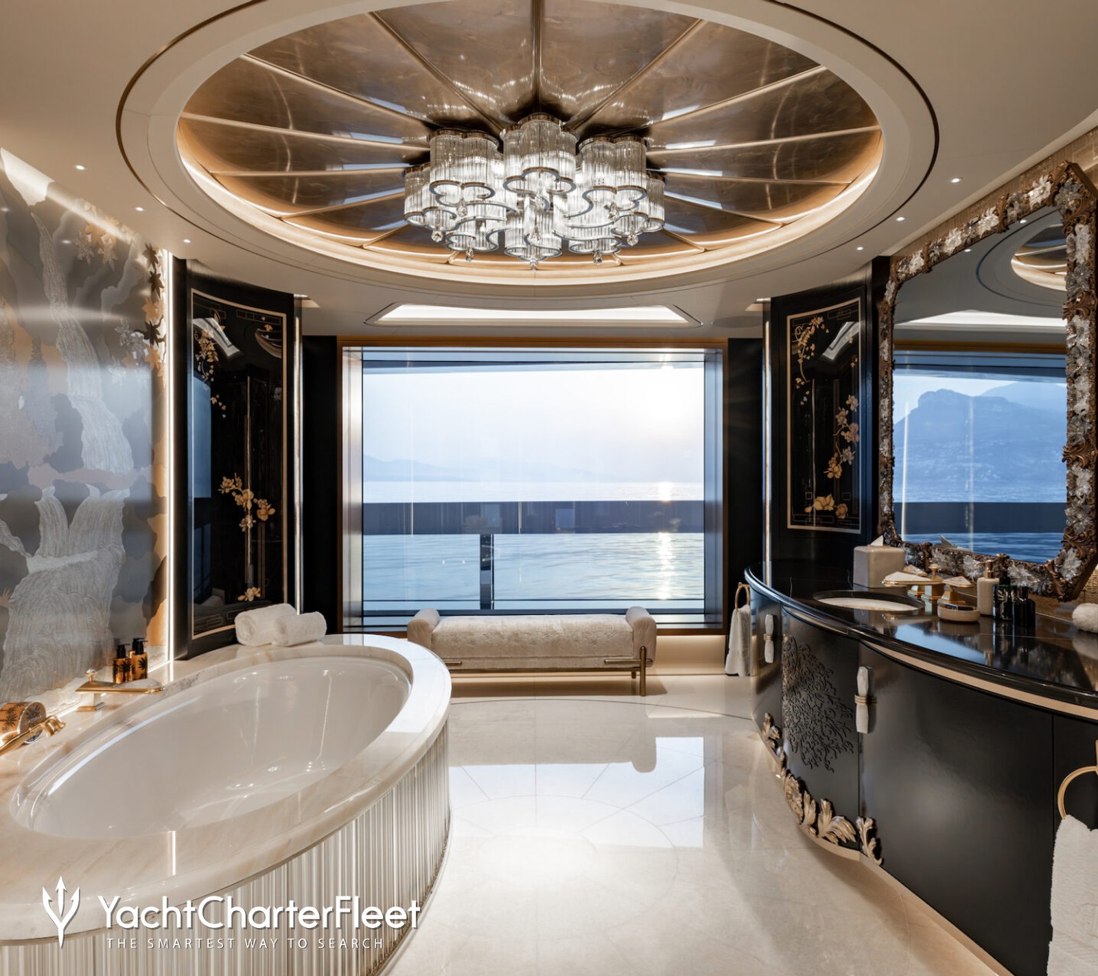 Interiors penned by Reymond Langton Design are award-winning on their own, with the premium spa-quality health and wellness amenities obtaining the Outstanding Lifestyle Feature award at the 2025 Boat International Design & Innovation Awards.