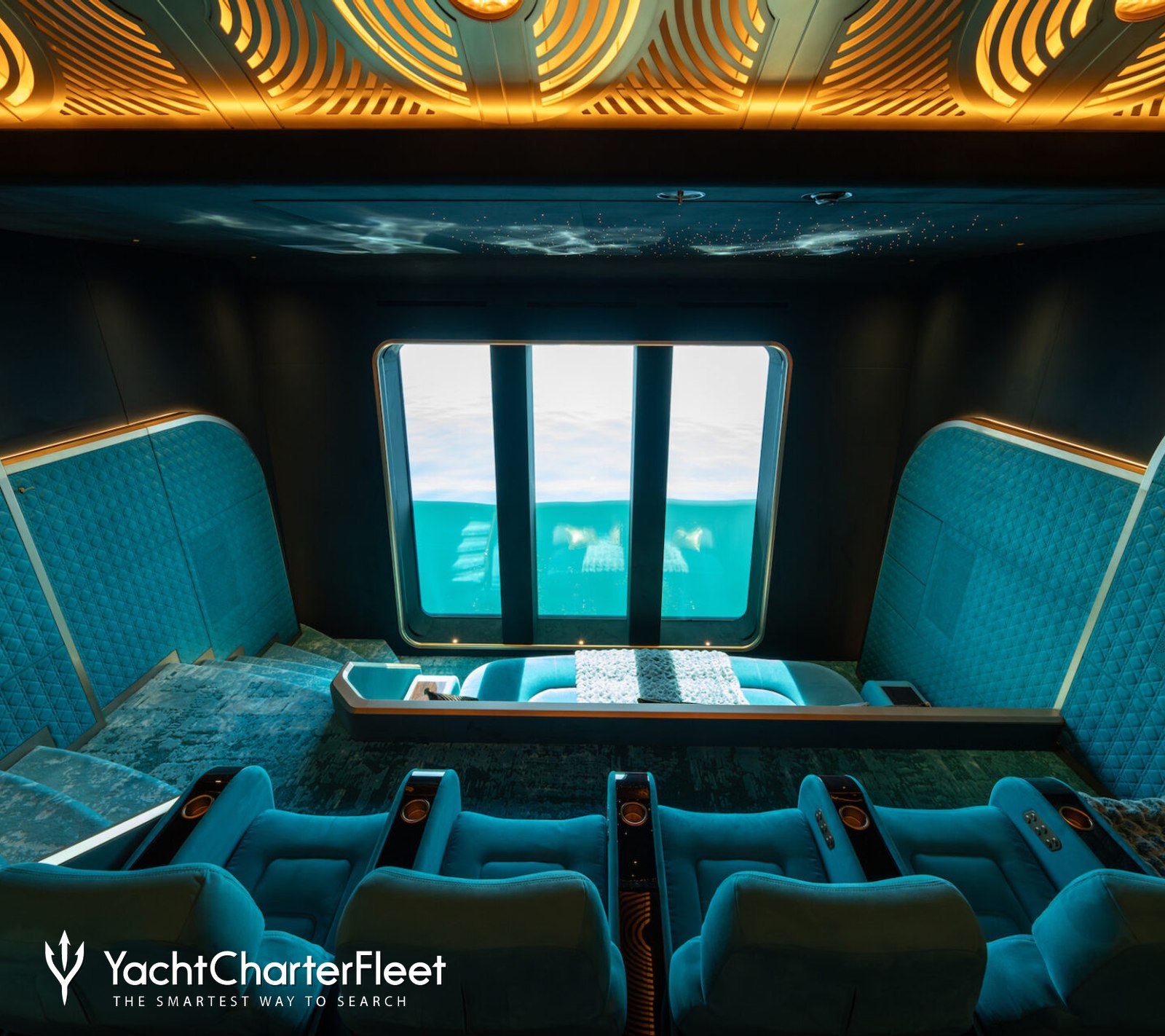 Onboard, charter yacht KISMET boasts opulence at its finest. Her exteriors are vast with ample space for socialising and relaxing in equal measures, with multiple alfresco lounges and dining areas, an outdoor cinema setup, a well-appointed sun deck layout, and an eyebrow-raising selection of water toys for those who enjoy the thrills of watersports yacht charters.