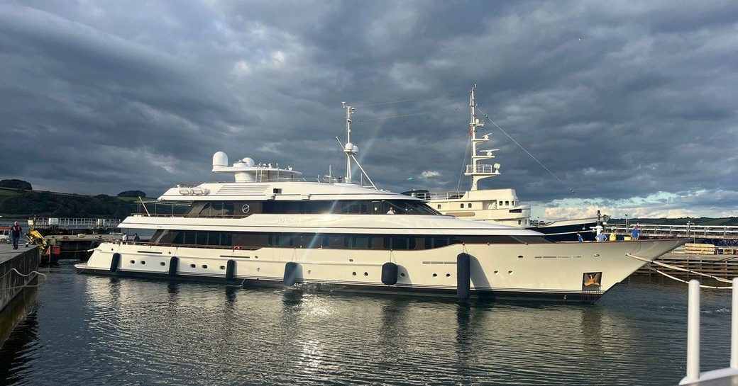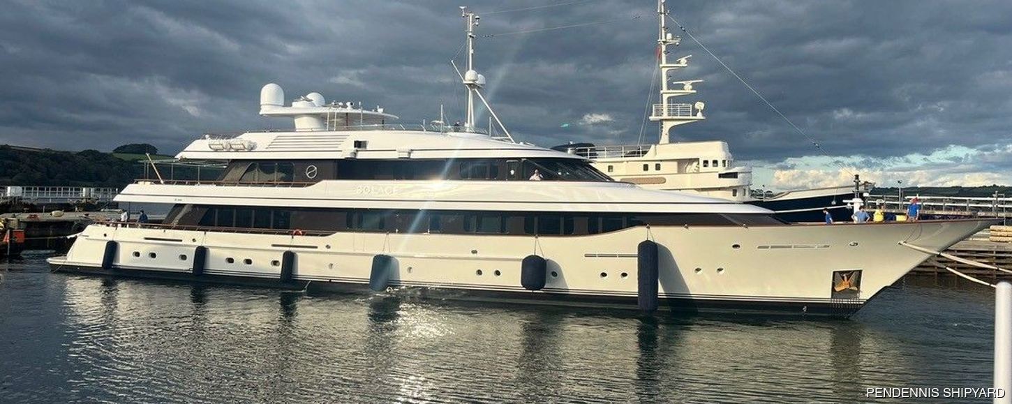 Emerging from the Pendennis Shipyard after an extensive 10-month refit, 187ft (57m) superyacht charter SOLACE gears up for sea trials as she prepares for a three-year circumnavigation.