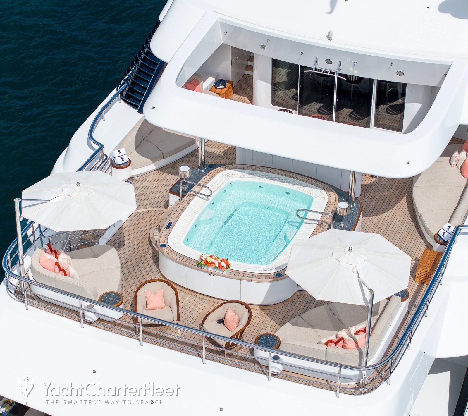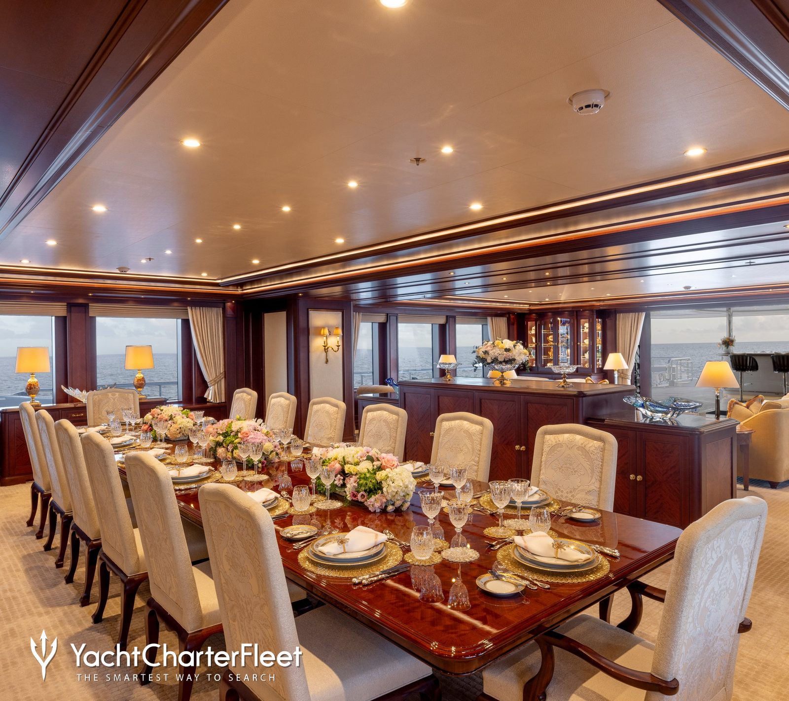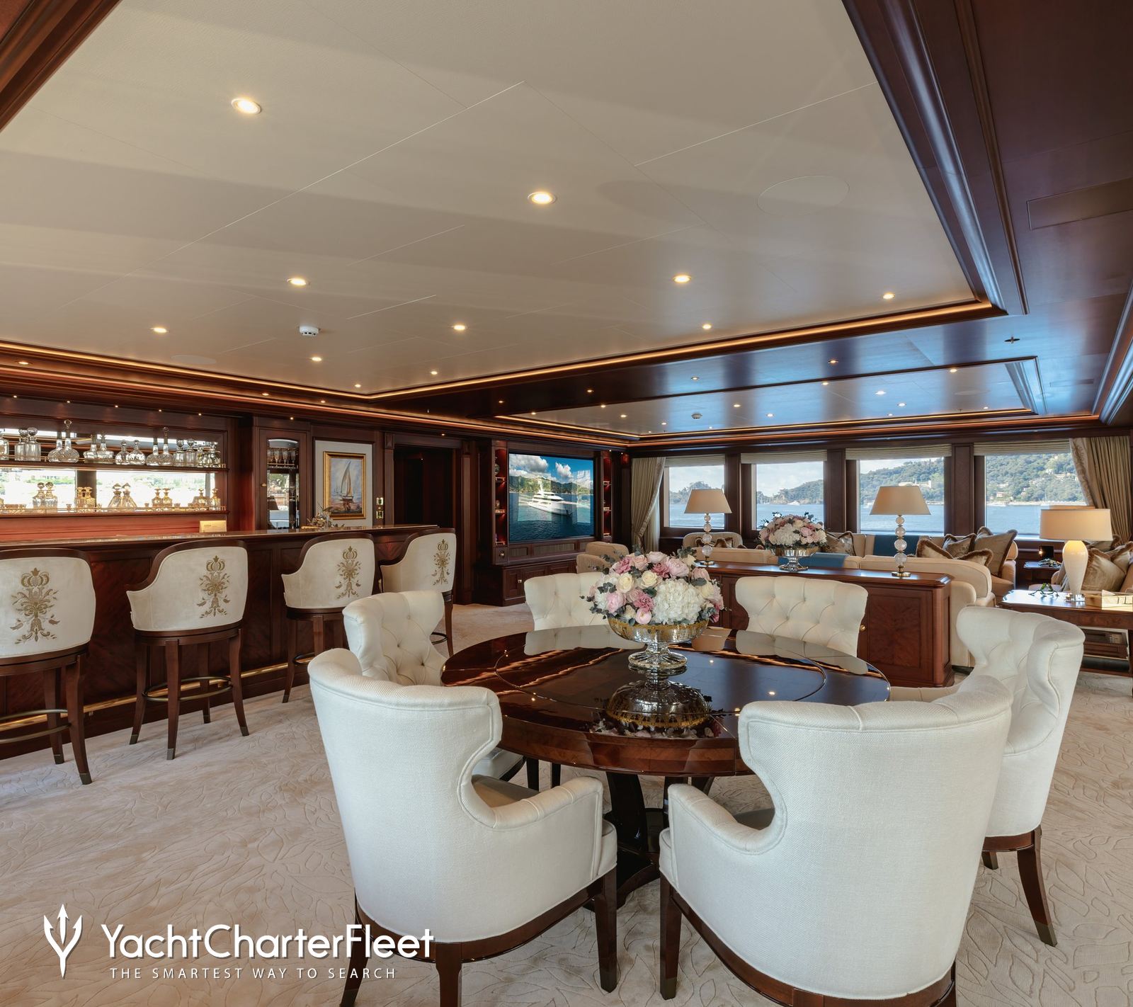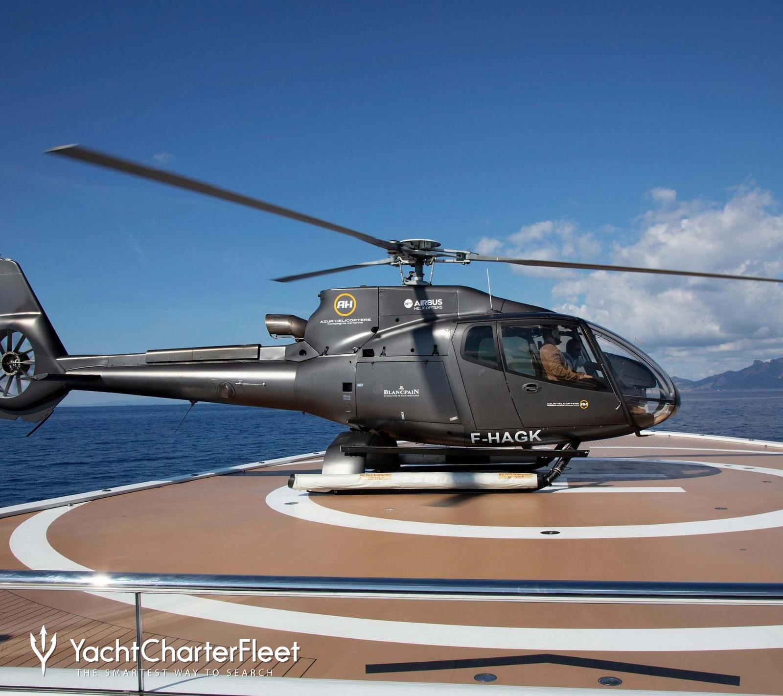 A standout feature is the yacht’s helipad, adding further versatility for guest transfers and special arrivals during a charter experience.