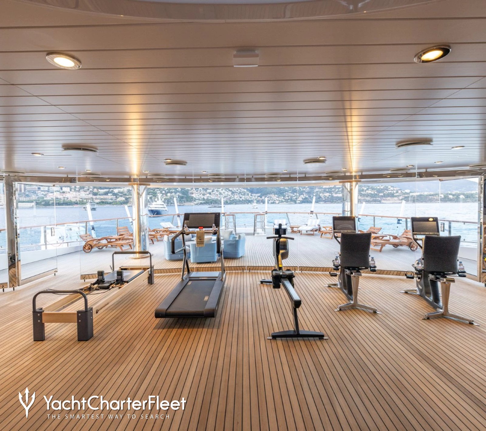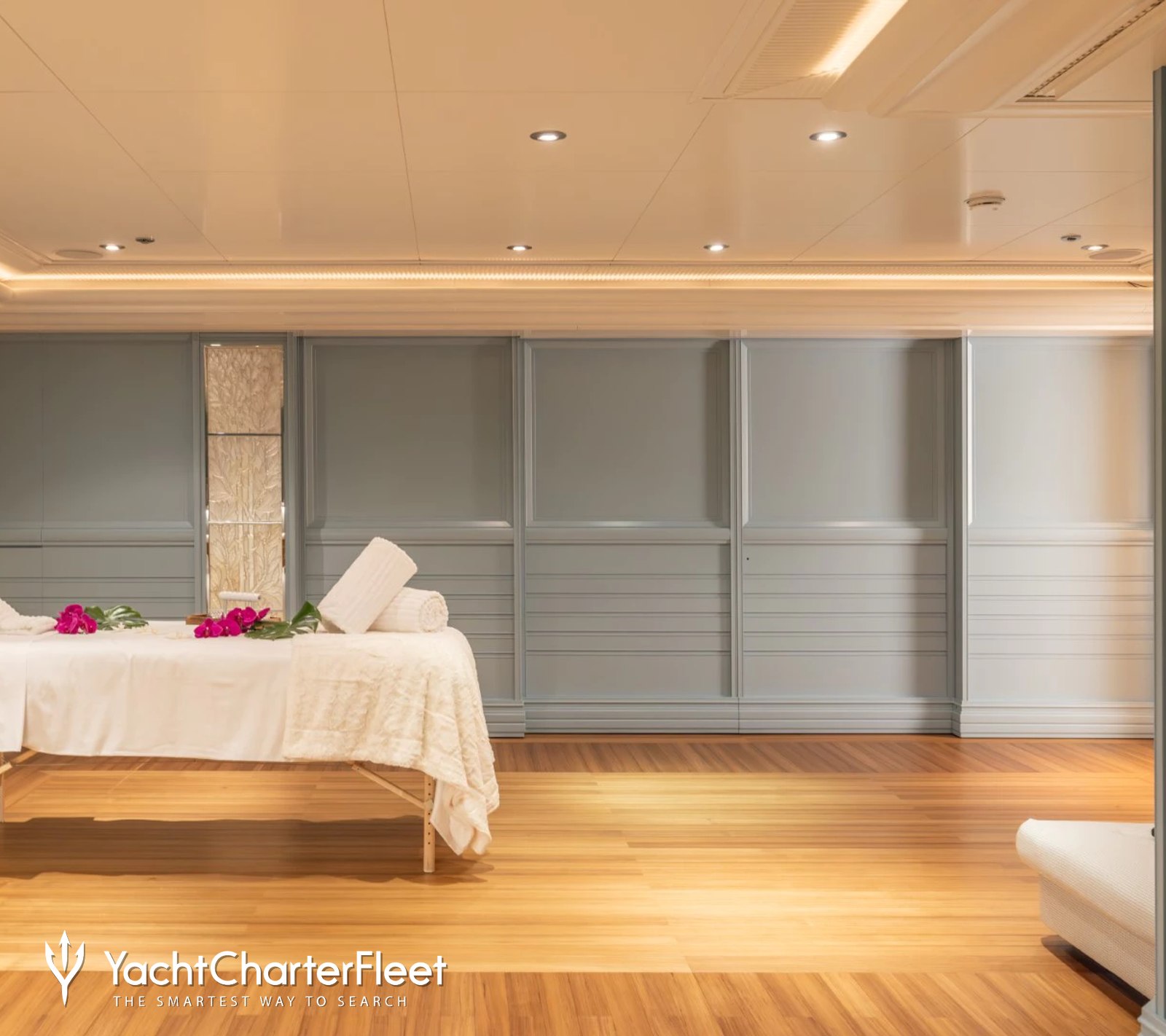 Elsewhere onboard, charter guests can explore a range of leisure activities with Wi-Fi connectivity and an outdoor cinema setup, plus top-tier health and wellness amenities that include: