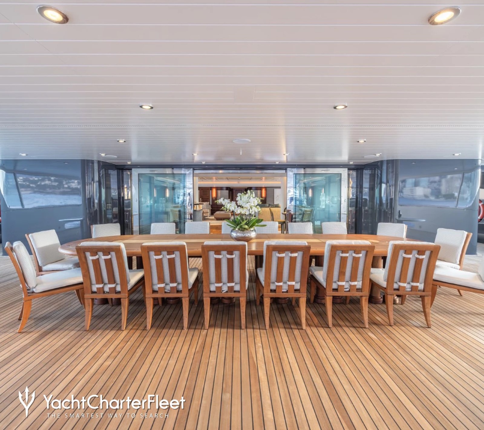 The main and upper decks provide plenty of opportunities to relax in comfort, with conveniently placed lounge areas that make the most of the passing seascapes of Caribbean and Mediterranean yacht charters, plus a formal dining area, and quiet nooks for moments of peace.