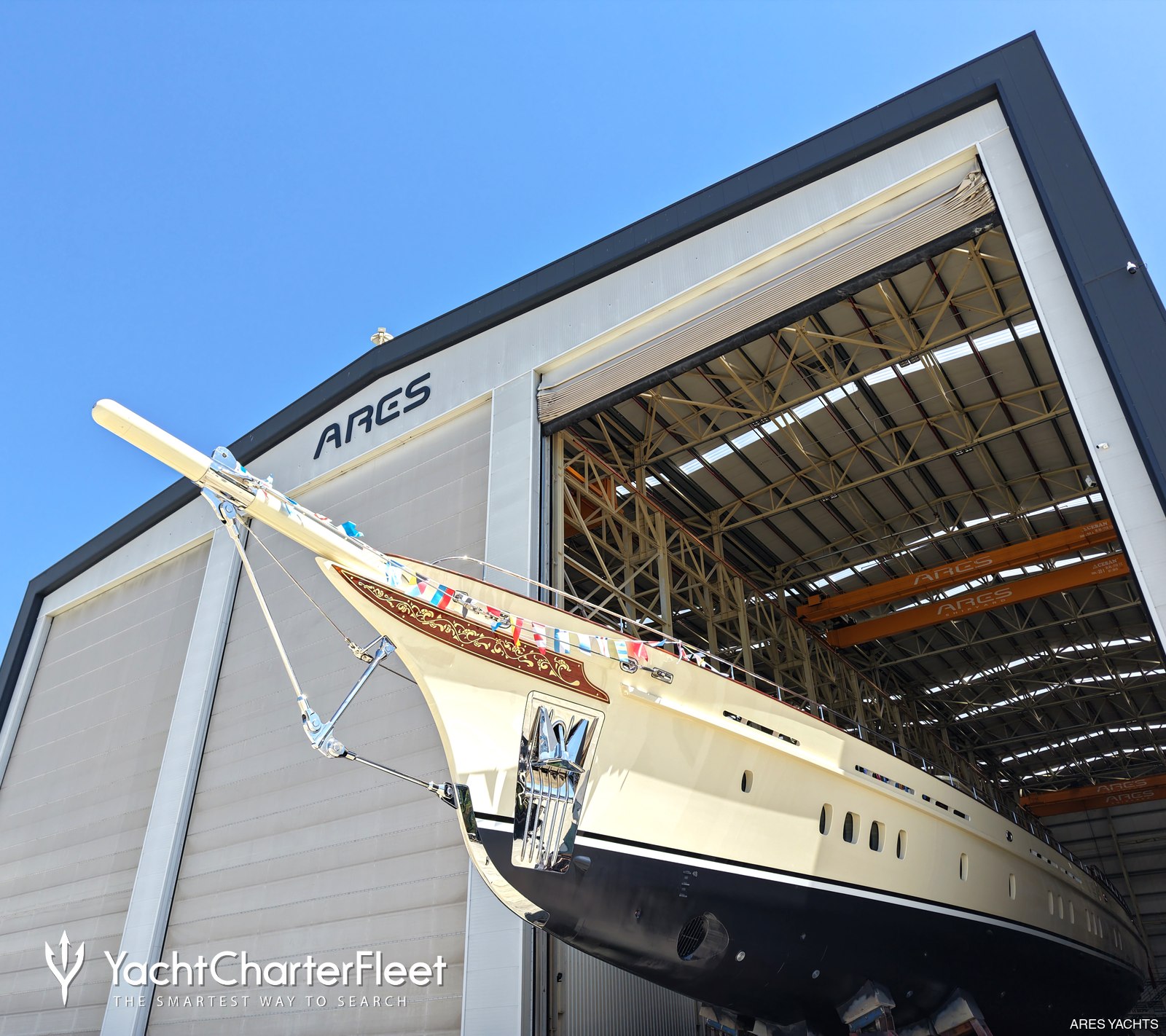 During initial trials, 202.2ft (61.61m) superyacht rental SIMENA demonstrated remarkable poise under sail, moving with ease and balance in varying conditions. ARES Yachts has described the experience as a defining moment for the shipyard, citing her stability, handling, and near-silent hybrid operation as exceeding early performance expectations.