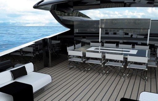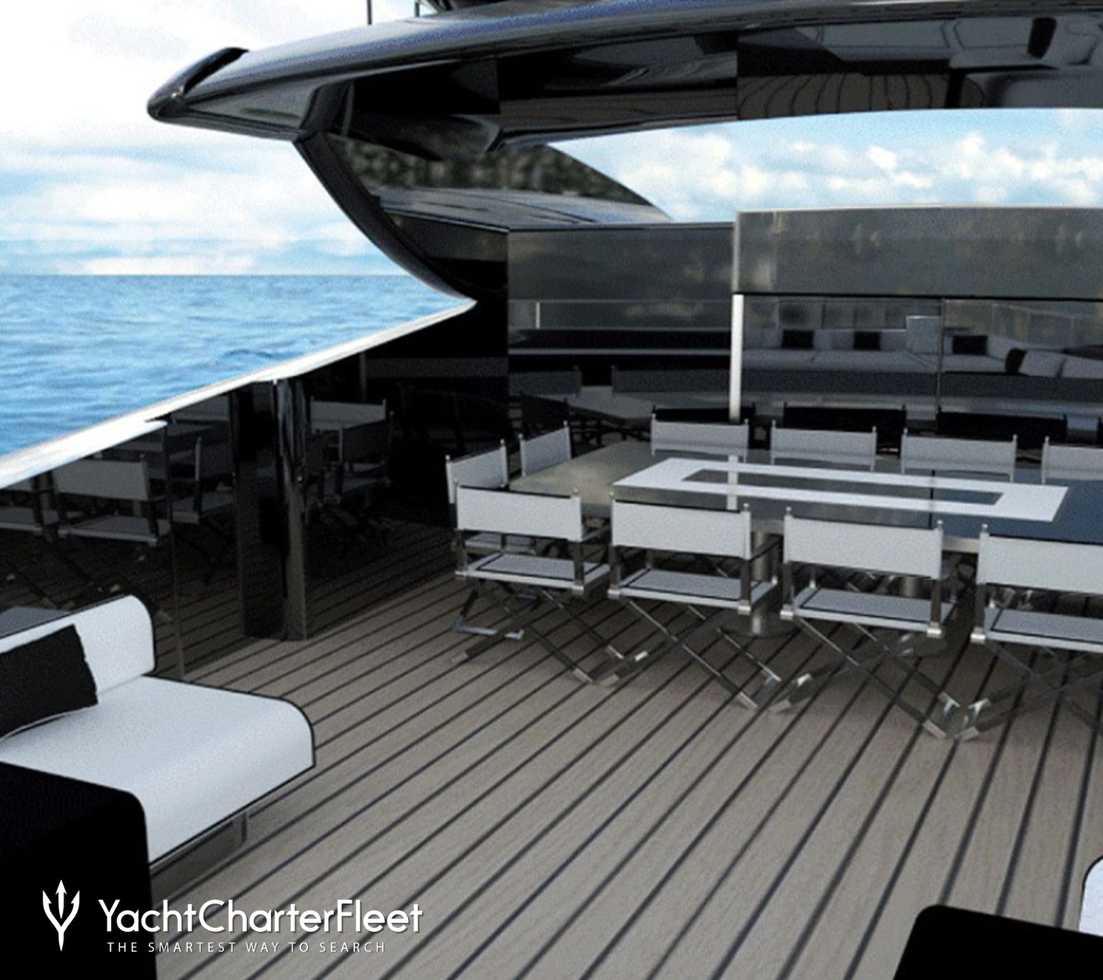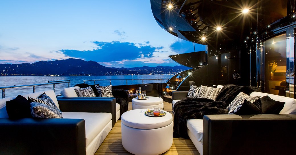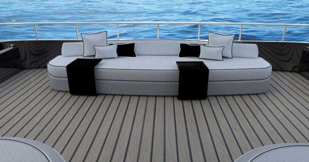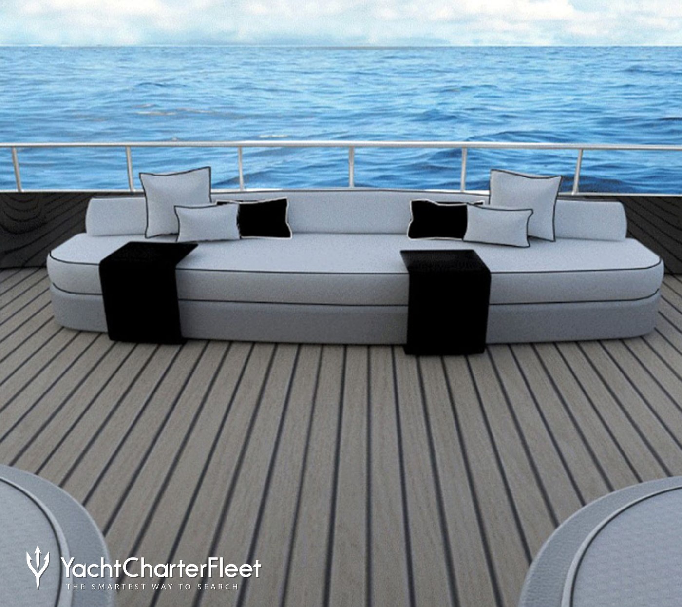 Her rear deck also boasts a sleeker, less cluttered seating arrangement configuring couture loungers and sofas, resulting in the deck space appearing airier and more capacious to host lively gatherings overlooking the glistening water.