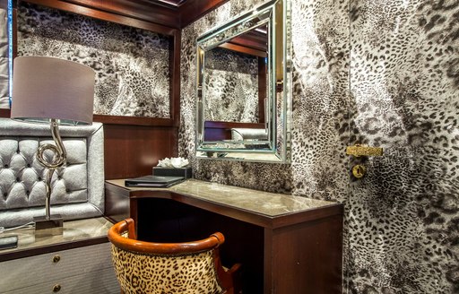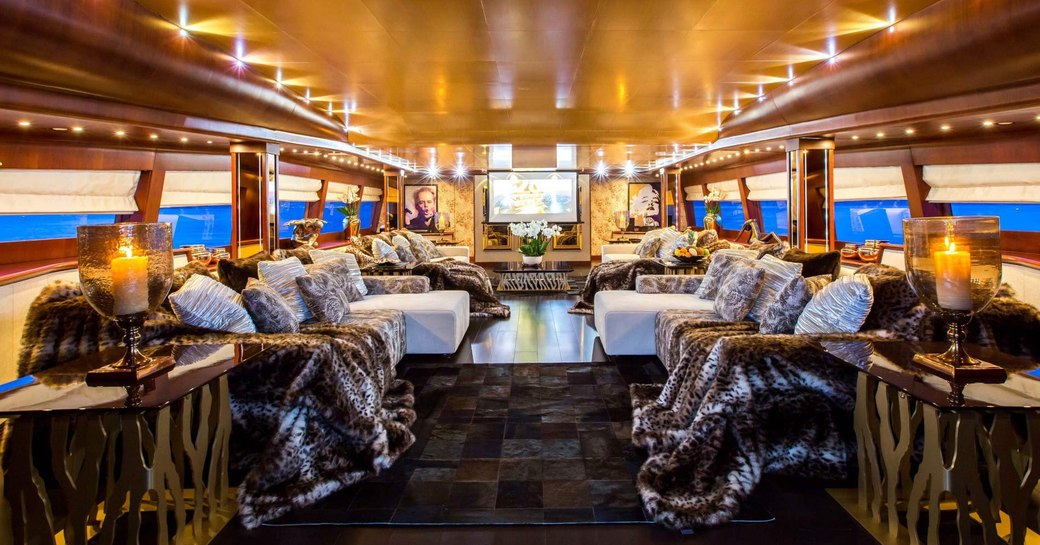 The original concept decorated the yacht’s interior in snakeskin and animal fur highlighting every inch of the interior with plush fabrics and materials creating an interesting opulent energy that exuded luxury and sophistication.