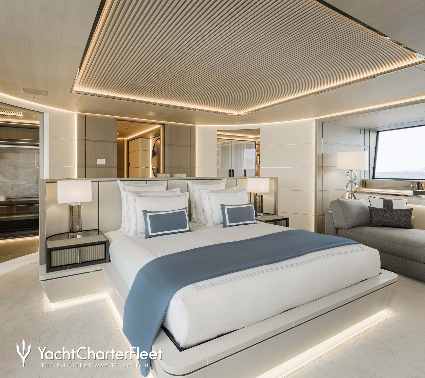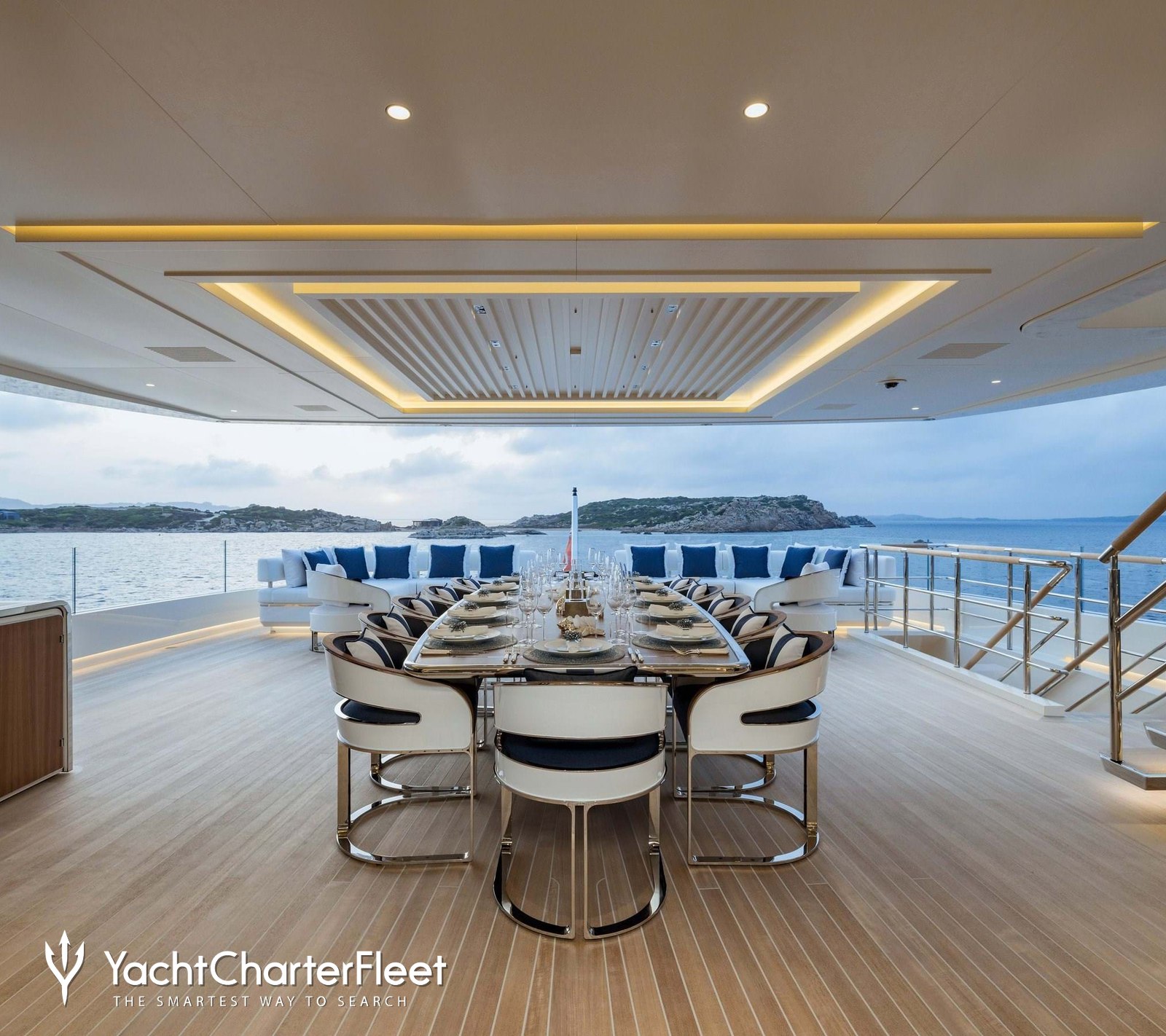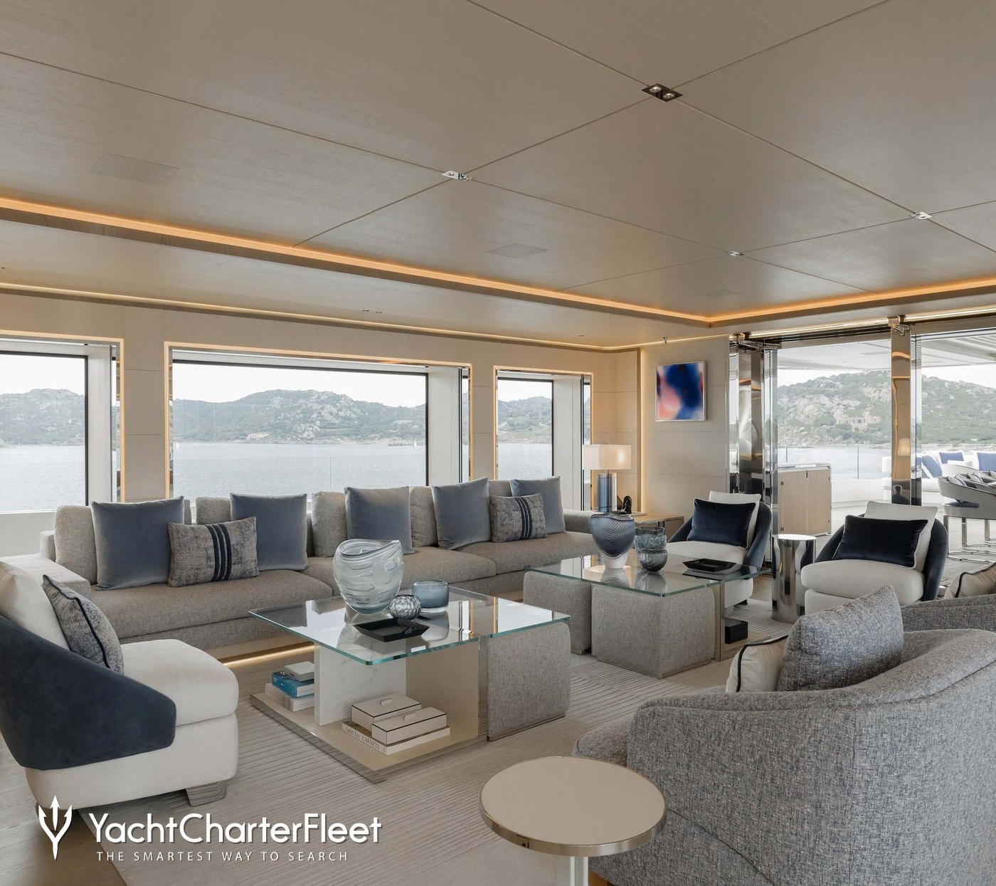 Currently sitting as the second largest Rossinavi yacht for charter, her impressive range for island-hopping itineraries and premium onboard amenities have rapidly made her a captivating choice for Caribbean and Mediterranean yacht charters.