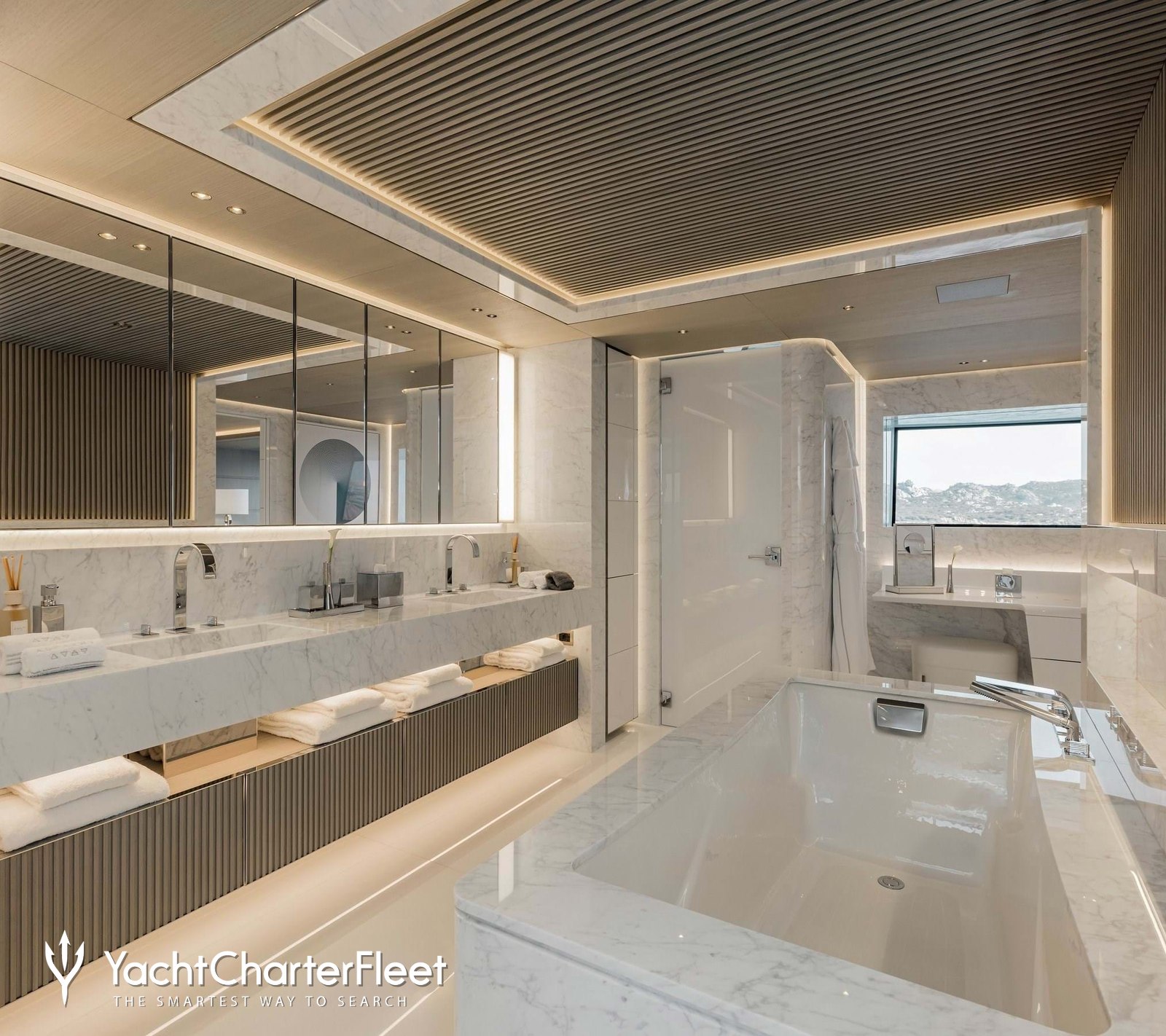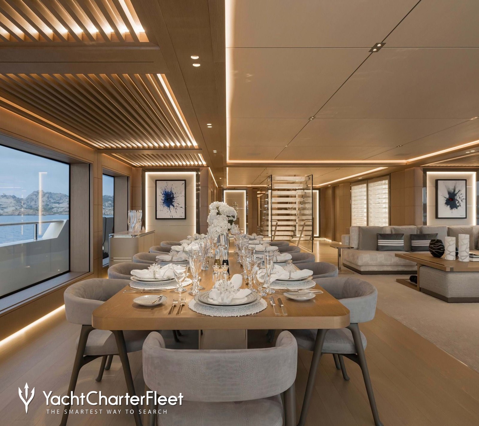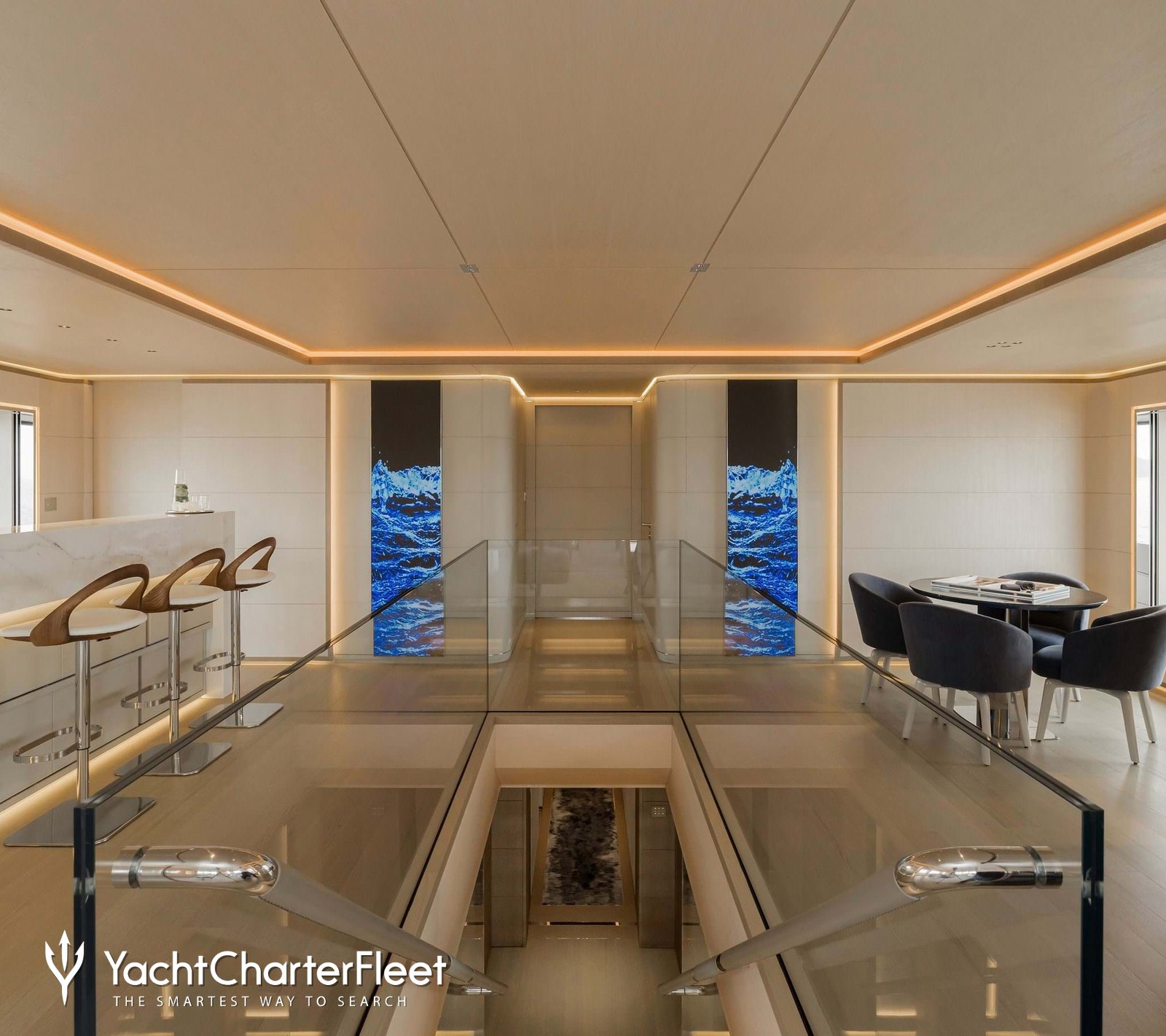 Currently sitting as the second largest Rossinavi yacht for charter, her impressive range for island-hopping itineraries and premium onboard amenities have rapidly made her a captivating choice for Caribbean and Mediterranean yacht charters.