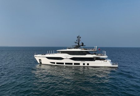 One of the largest charter yachts attending the show this year, 133.6ft (40.69m) charter yacht ANDIAMO is a brand-new 2025 launch that captures the essence of modern Mediterranean cruising. With sleek lines and a streamlined silhouette, she promises an open-air lifestyle that is complemented by seamless indoor-outdoor transitions.