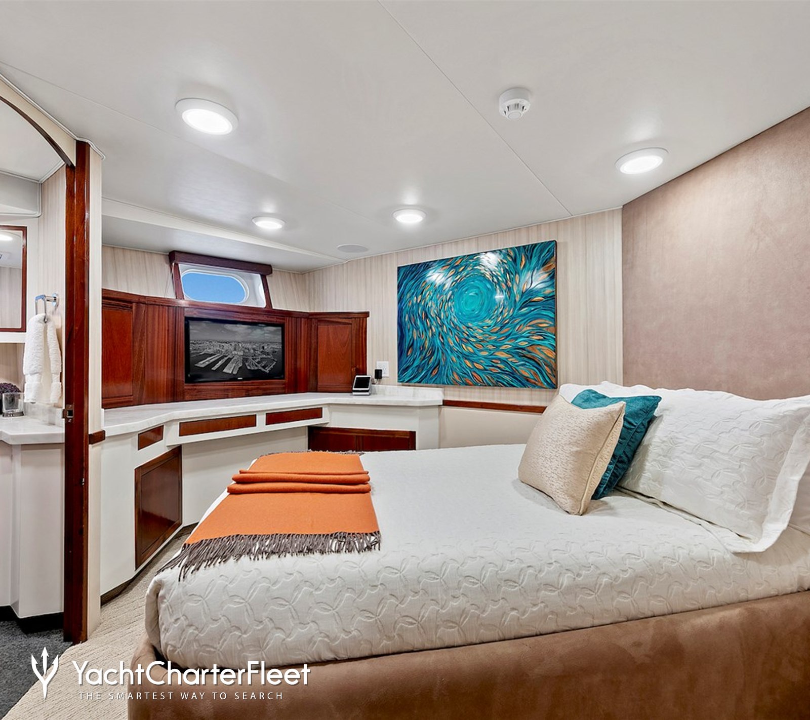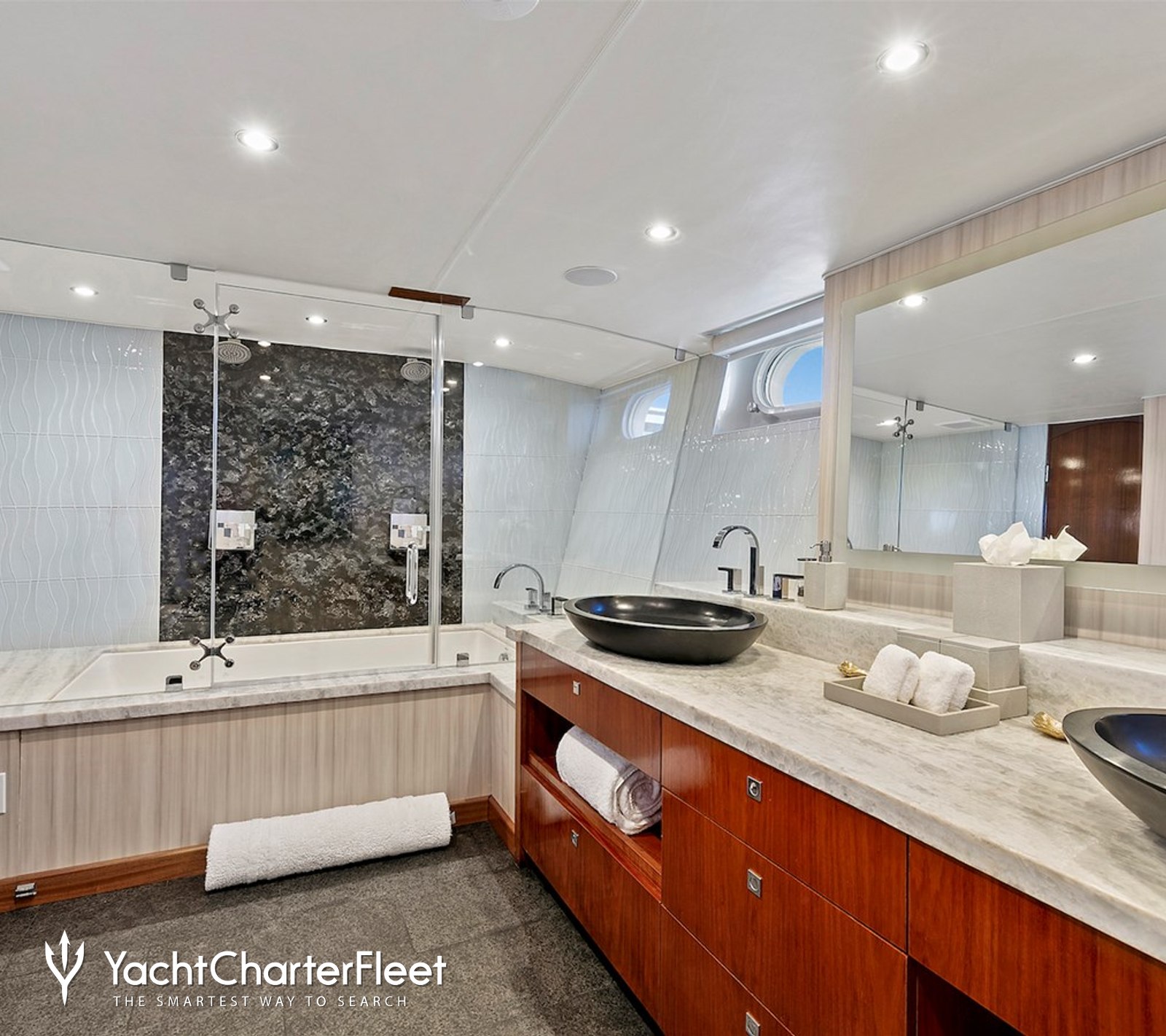 Finishing busy days of a watersports yacht charter with the promise of a peaceful sanctuary, the overnight accommodation onboard charter yacht EL REY is sumptuous and elegant, with ample floor space, storage, and ensuite facilities.