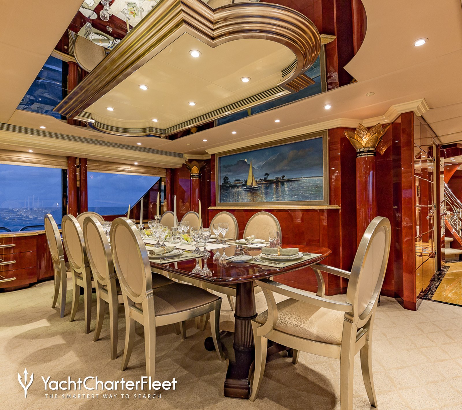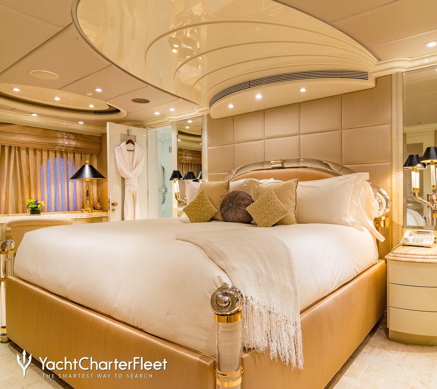 Featuring plush lounge areas, a formal dining area, an ornate wetbar, and Wi-Fi connectivity, charter guests are kept busy throughout the duration of their yacht charter, with overnight accommodation promising nothing less than an extension of the opulence seen in the social areas.
