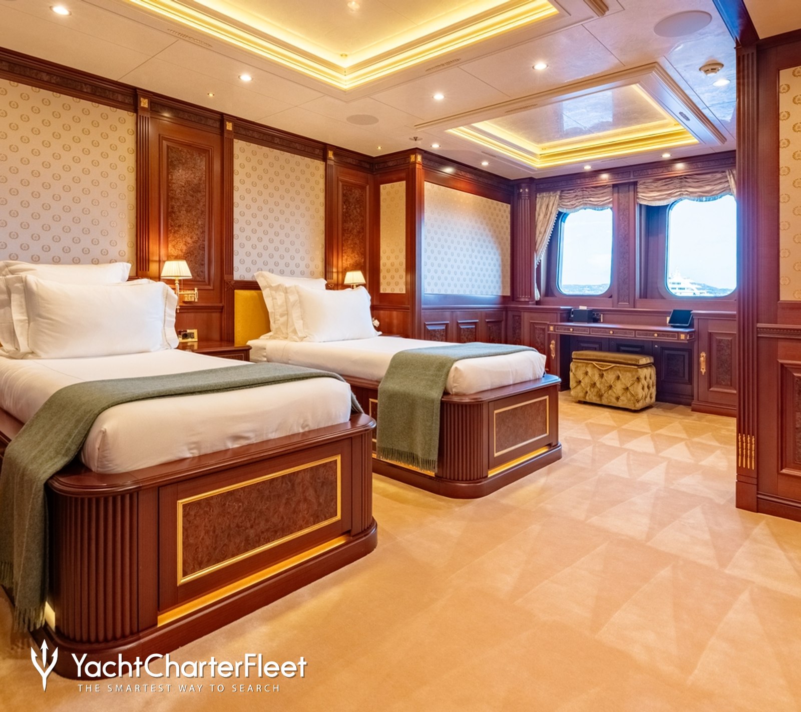 Comprising a stunning master, a pair of VIPs, a double, a twin, and a convertible cabin, the sleeping arrangements are versatile to accommodate a range of charter groups, with each cabin enjoying exclusive views and private ensuite facilities.