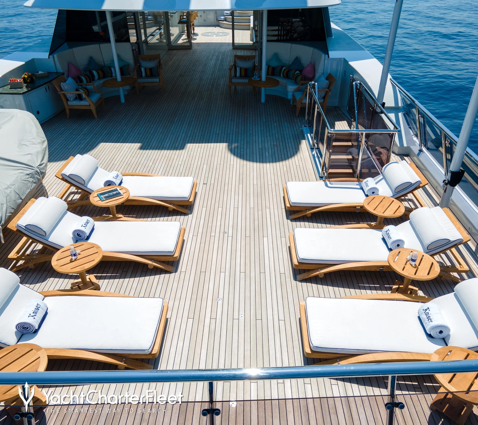 Winner of the Best Displacement Motor Yacht of 500GT to 1,299GT category at the 2012 World Superyacht Awards, charter yacht KAISER features three spacious exterior decks that host multiple alfresco lounge and dining options, with both open and sheltered options available.