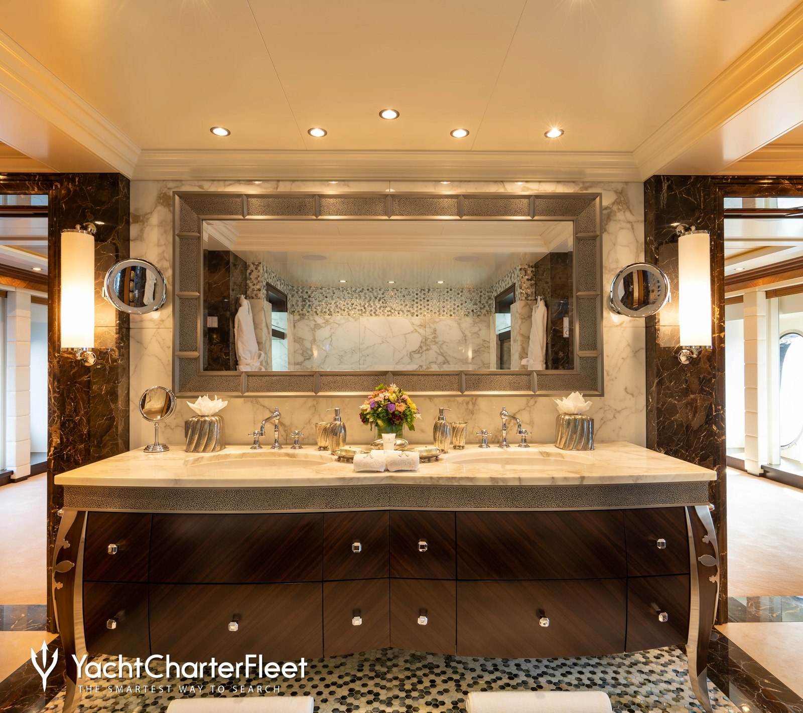 Each with their own ensuite facilities and exclusive views, the overnight areas onboard host a spacious master cabin with ample floor space and additional amenities, a selection of three double cabins, a convertible cabin, and a twin.