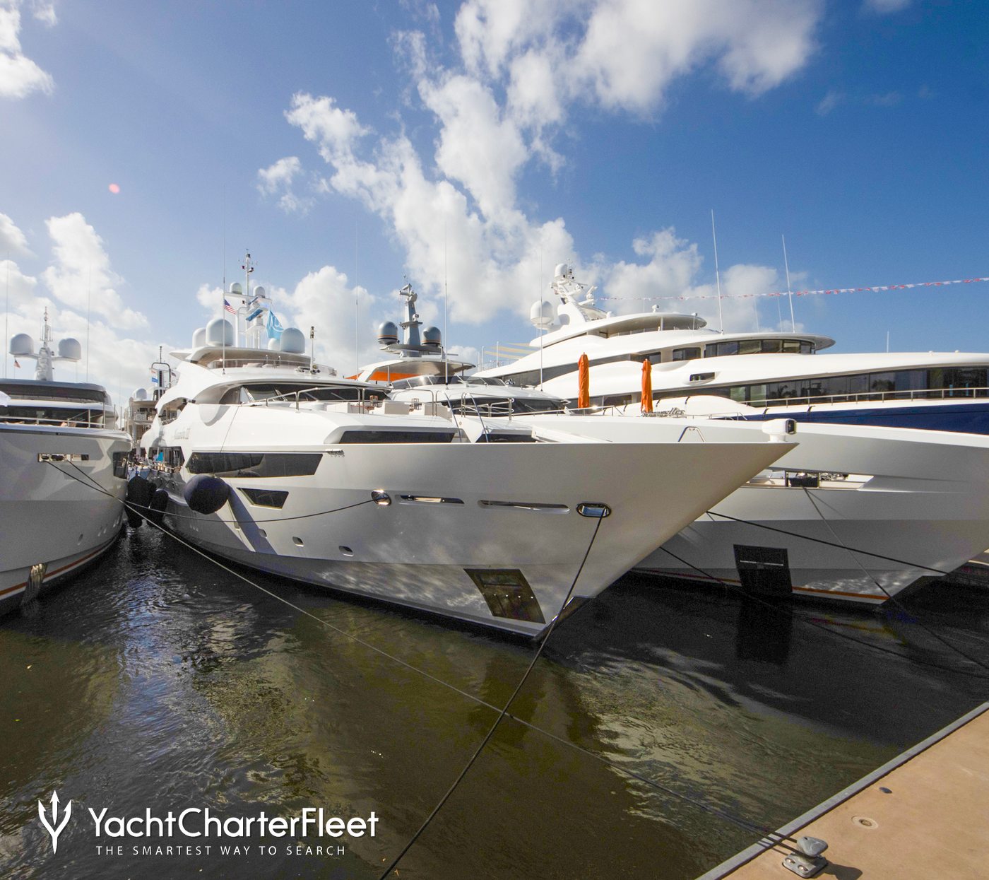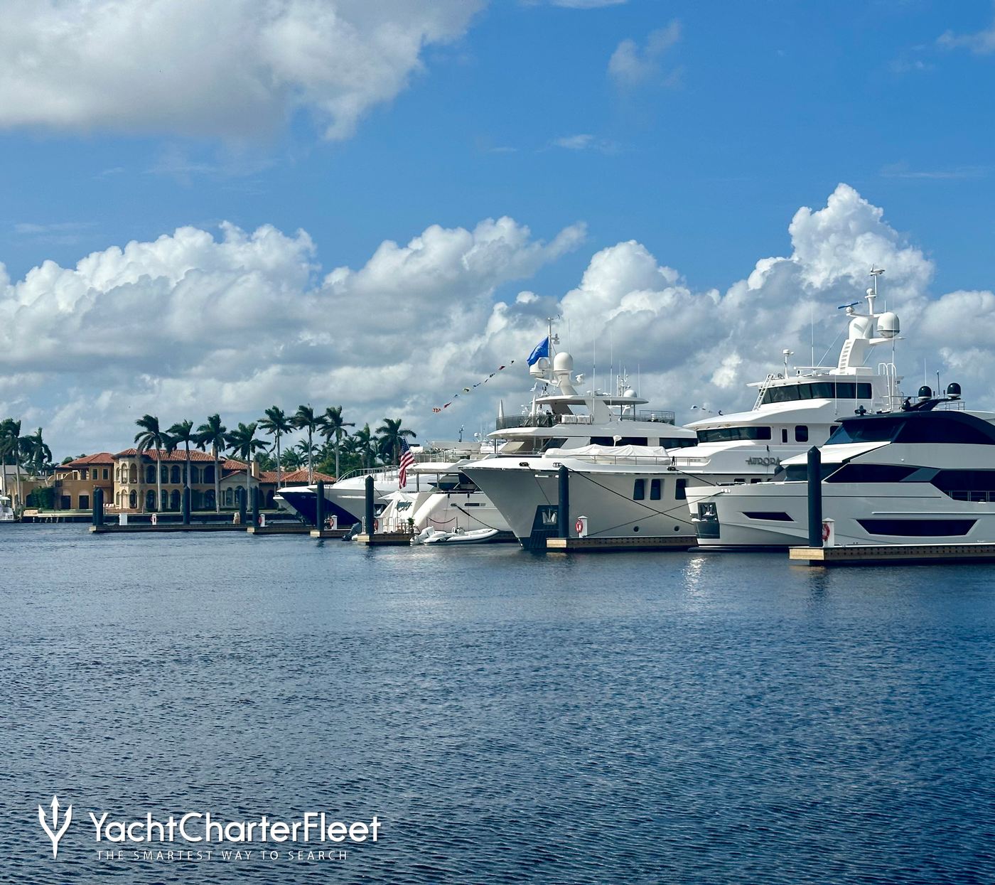 Out at anchor, the largest yacht rental in the vicinity of FLIBS is 223.9ft (68.2m) superyacht charter SYCARA V, who marks her first post-COVID appearance to the US show.