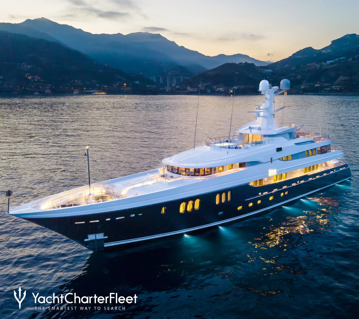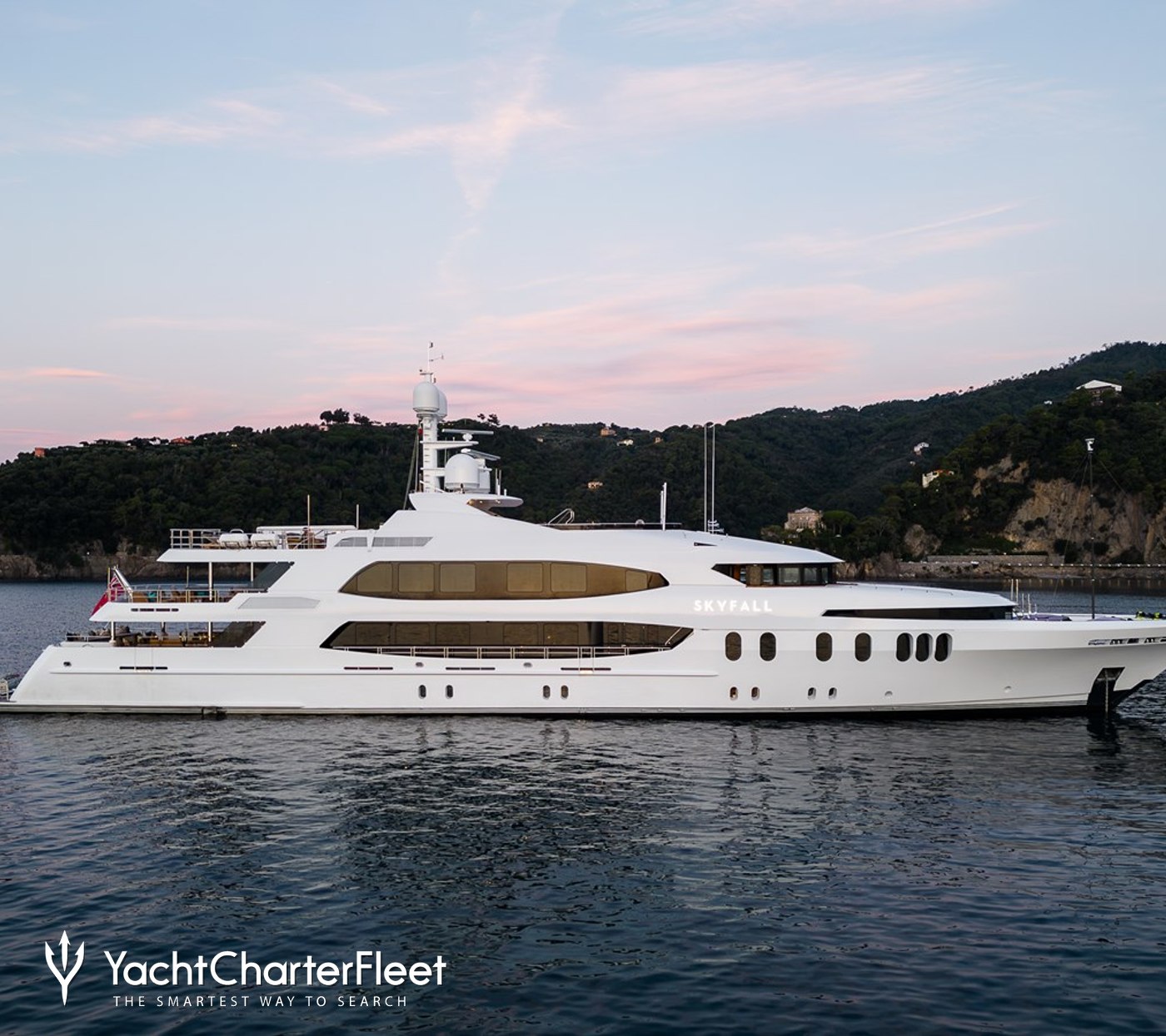 Her onboard highlights include a sundeck with a large Jacuzzi and bar, a fully equipped gym, and a beach club for effortless access to the water. Designed with speed and stability in mind, SKYFALL cruises comfortably between elite yachting destinations such as the Bahamas, Croatia, and other popular Mediterranean yacht charter destinations.