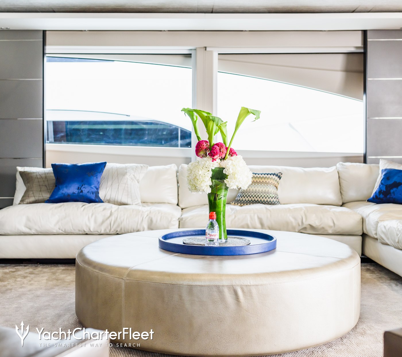 A generous deck Jacuzzi invites guests to relax between engagements, while well-designed seating and sunbathing areas allow effortless transitions from daytime cruising to evening social gatherings.