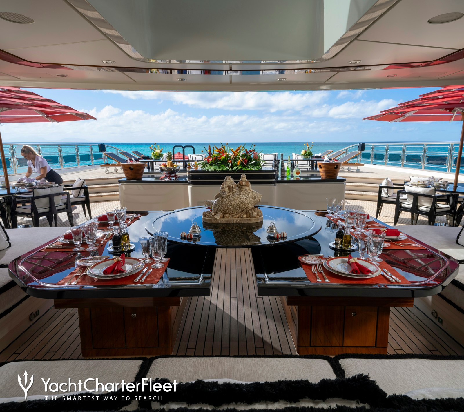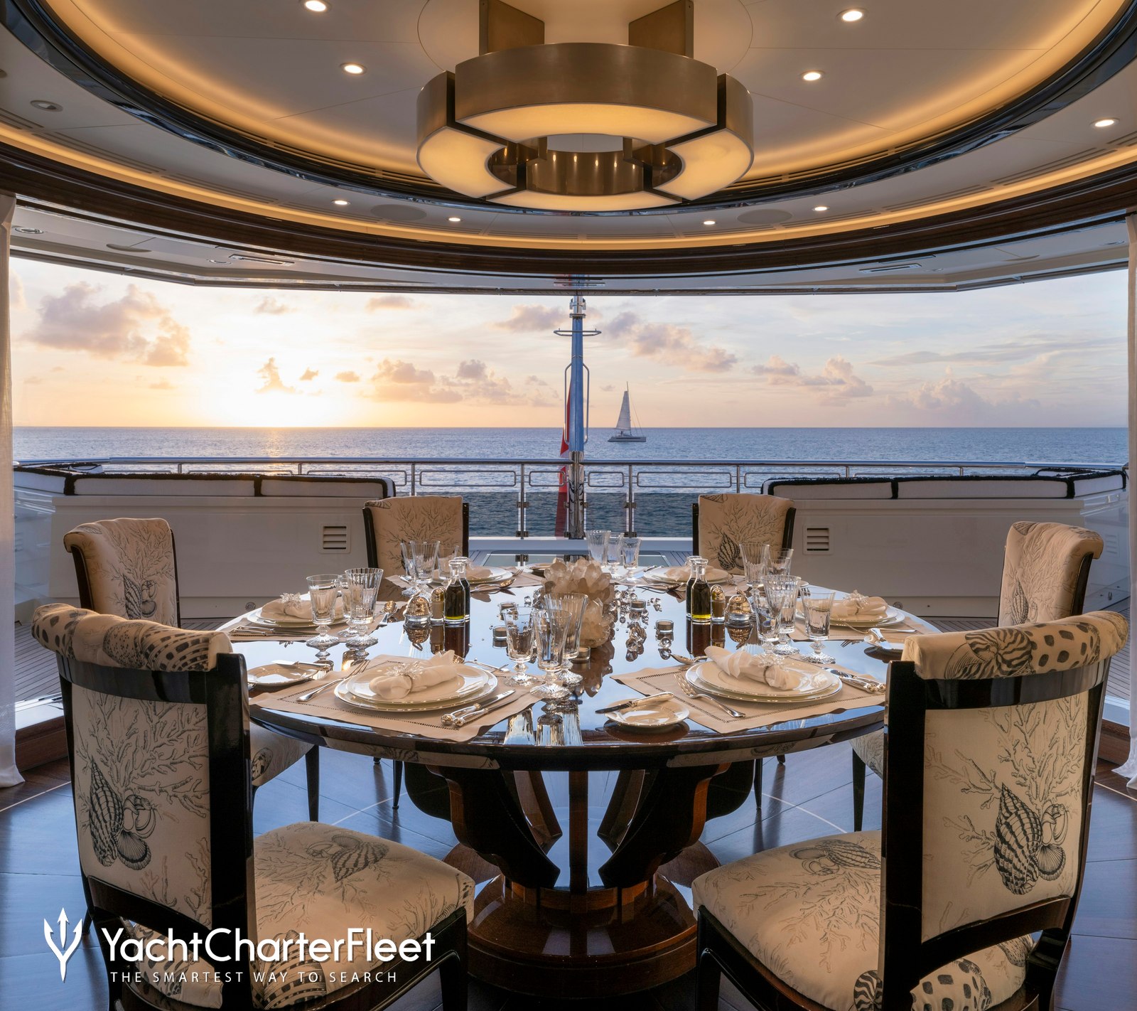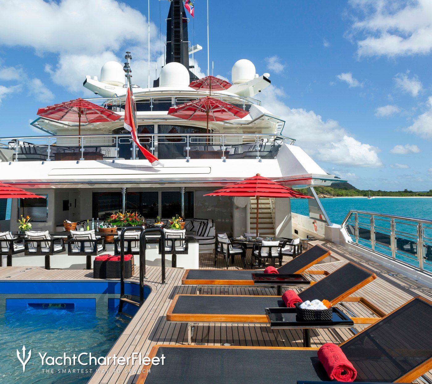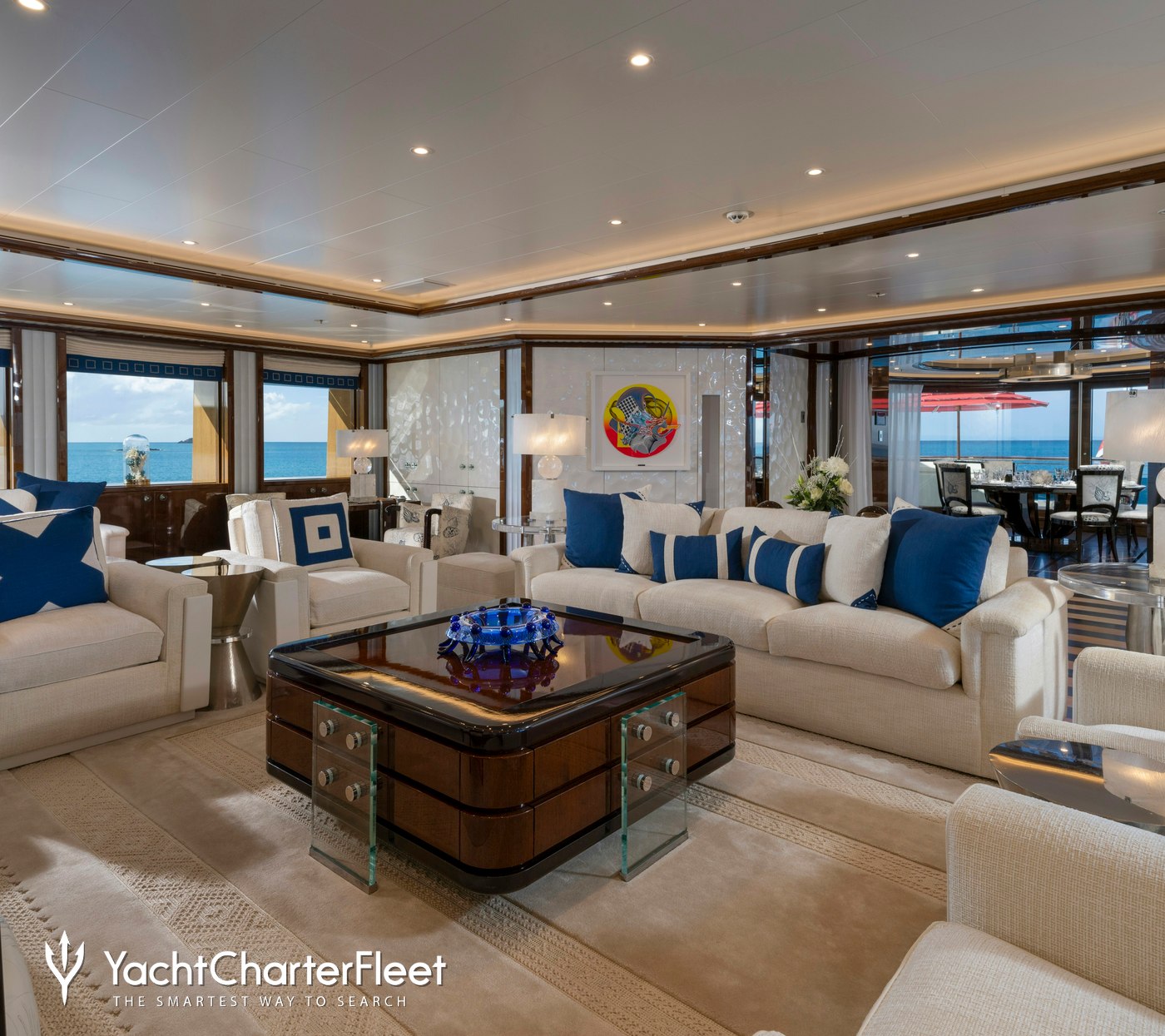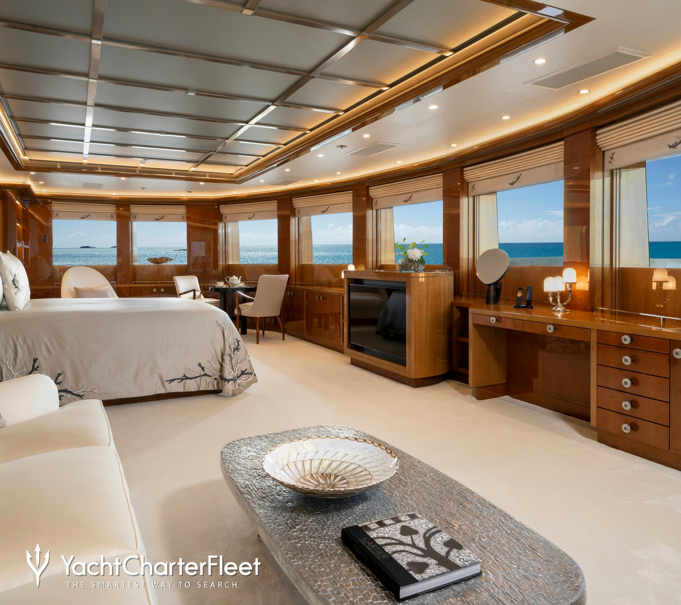 Her most iconic feature remains the aft-deck infinity pool, a design innovation that has inspired countless yachts since her launch. Ingeniously engineered, the pool can also convert into a helipad, offering flexibility for guests arriving by air while preserving uninterrupted sea views when in leisure mode.