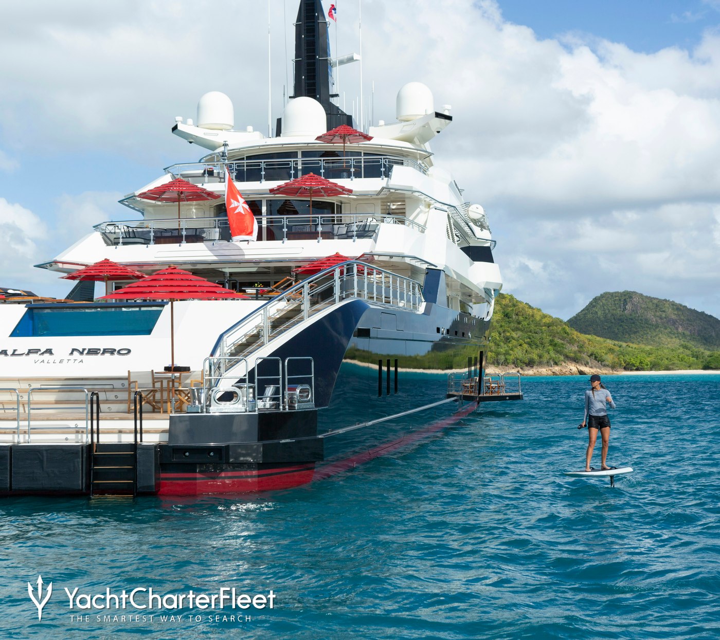 Welcoming enquiries for the current yacht charter season, yacht rental ALFA NERO is available for charters in popular destinations like the Bahamas, Antigua, and St Barts.