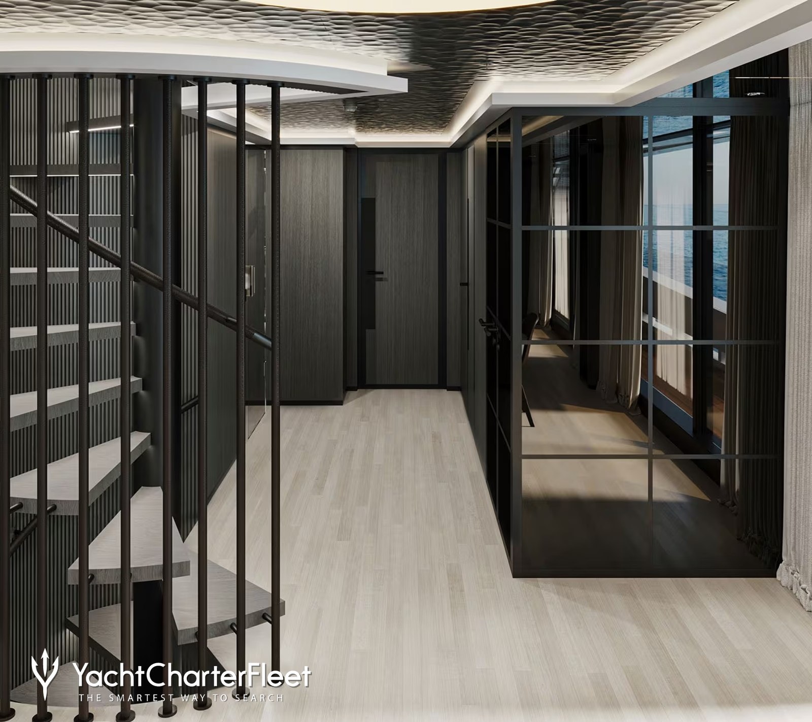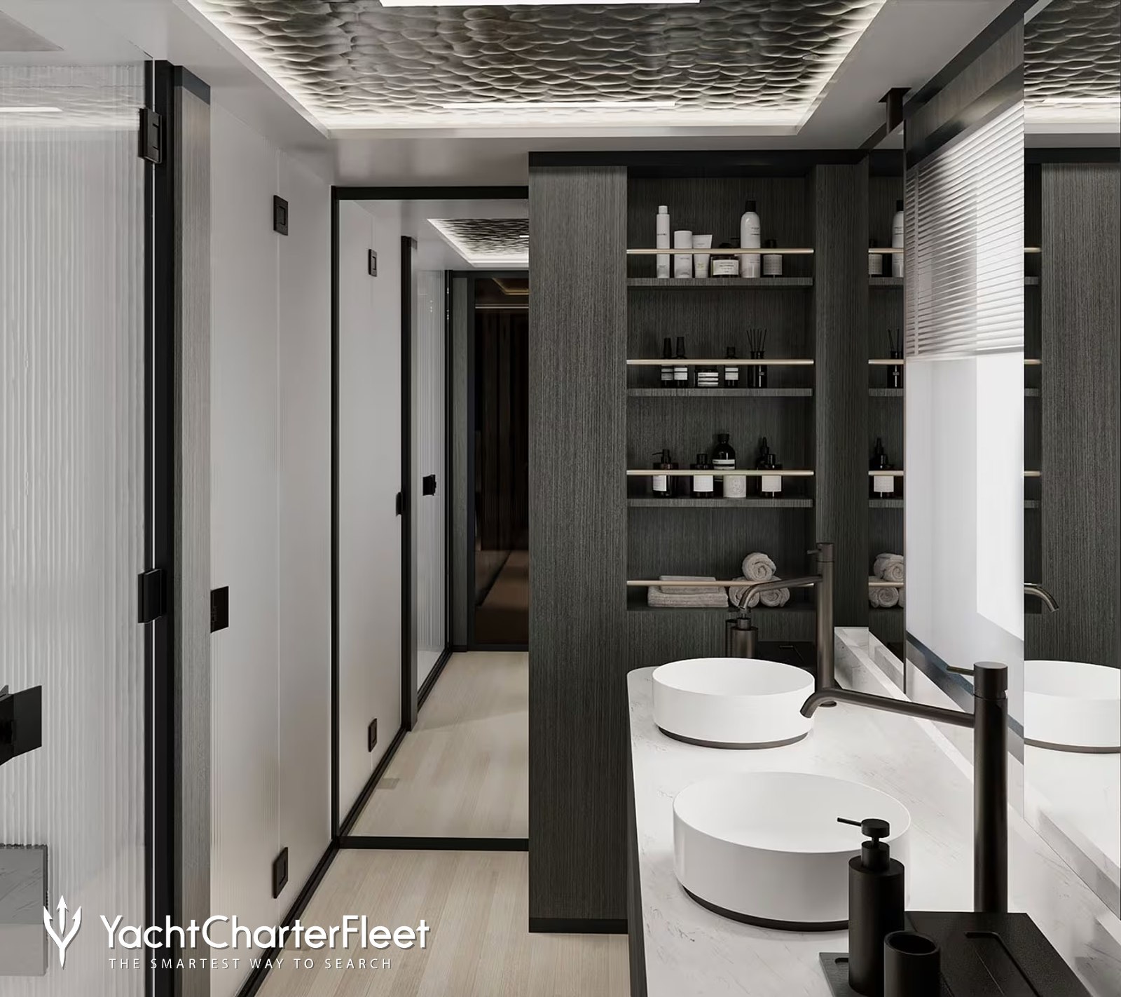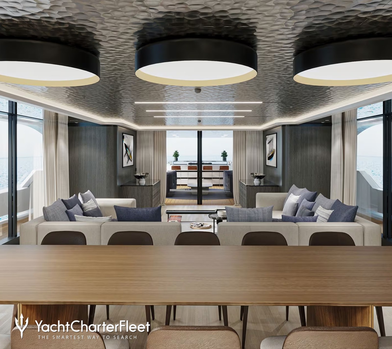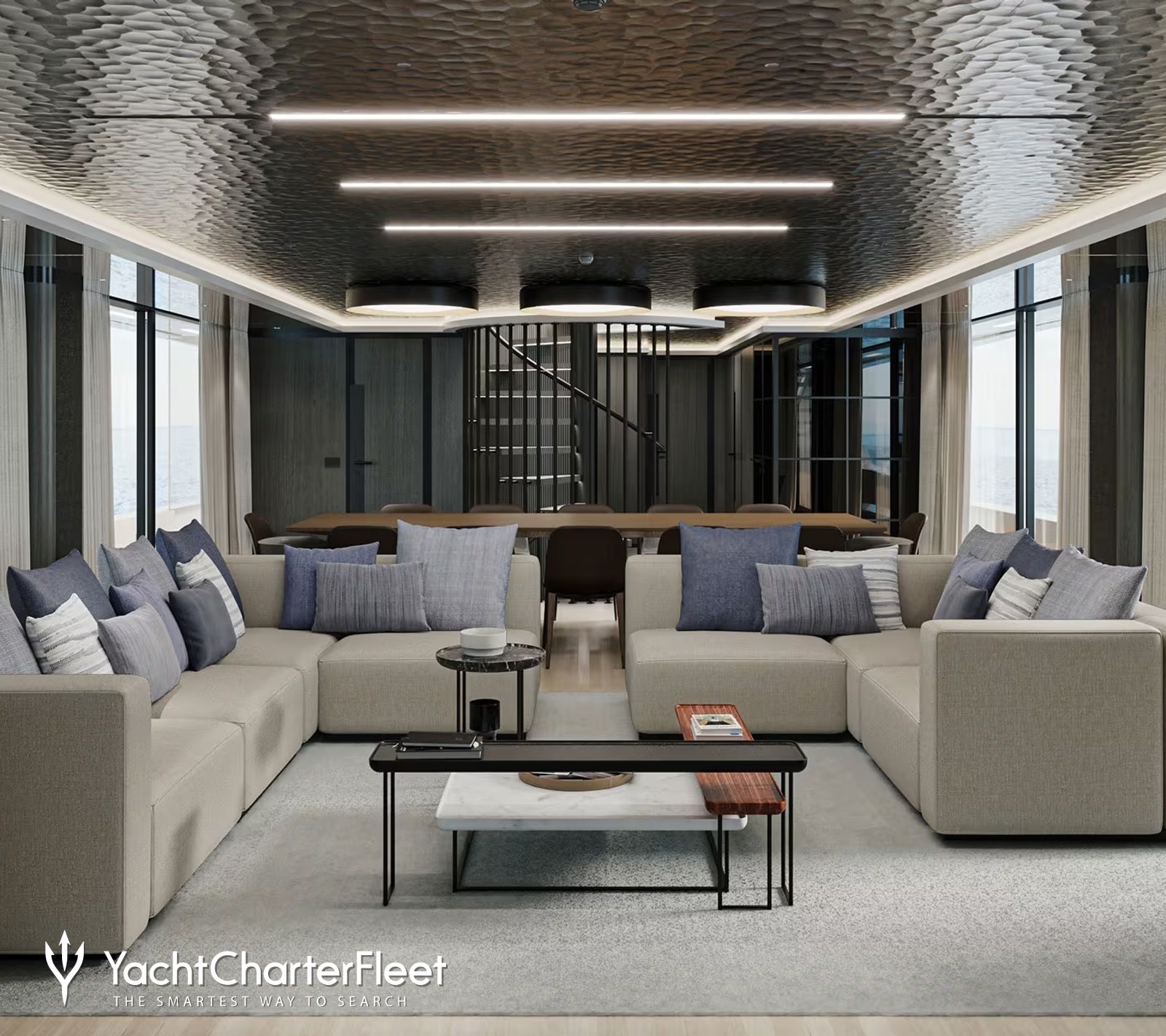 Hosting a plush lounge area, a formal dining setup for intimate family meals, and well-appointed seating nooks for enjoying the views during Mediterranean yacht charters, there are plenty of reasons to stay onboard, along with other amenities including a relaxing lounge in the upper salon, premium health and wellness facilities like a sauna and hammam, plus gym equipment and more.