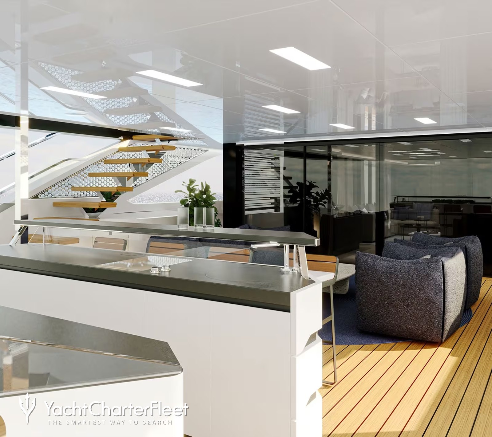 As soon as charter guests step onboard there's an abundance of space to relax, socialise, and take in the sights from multiple open-air lounge areas, alfresco dining spots, and dedicated sunbathing space.
